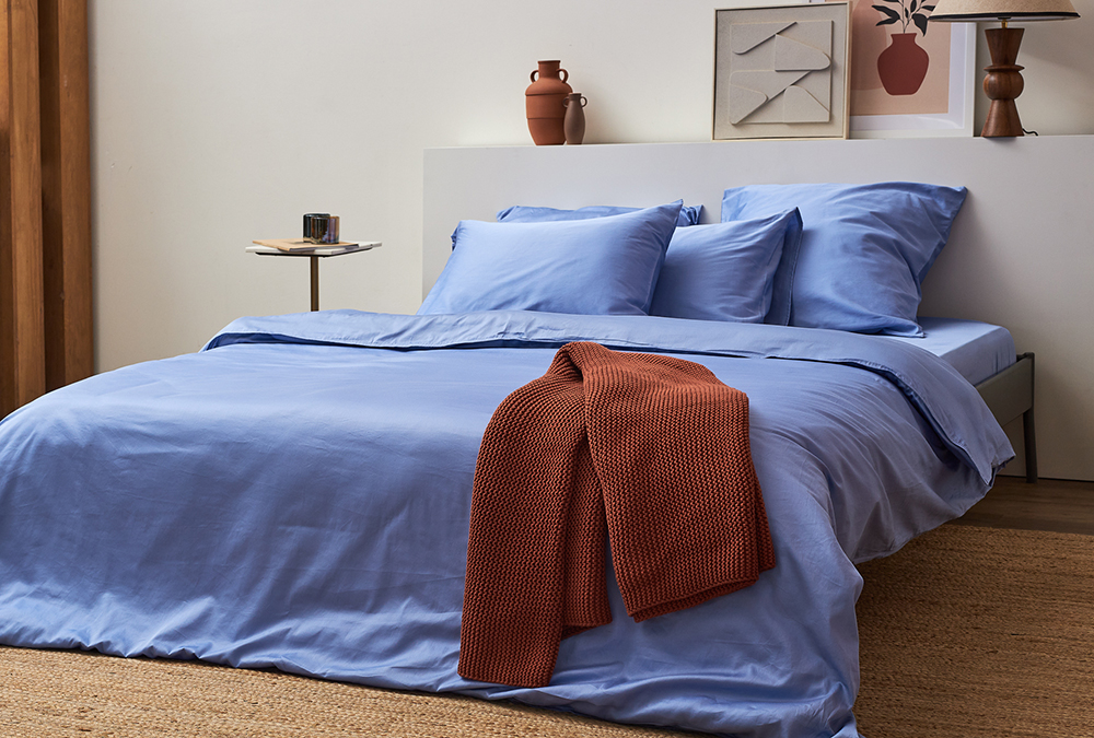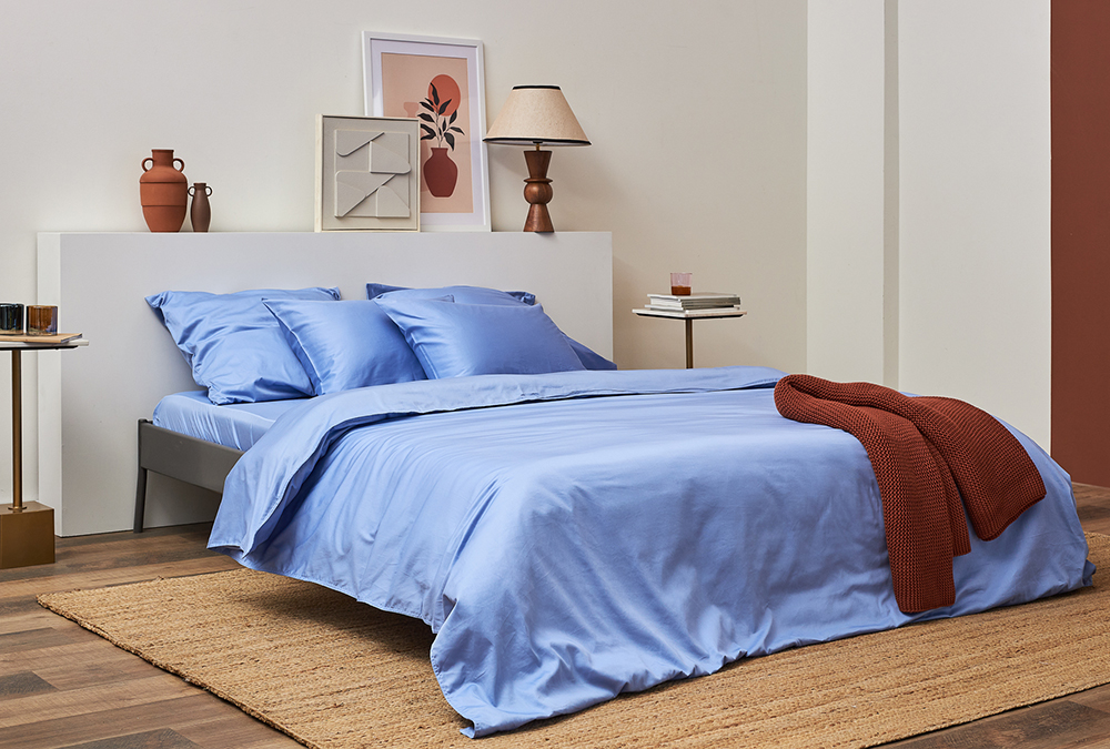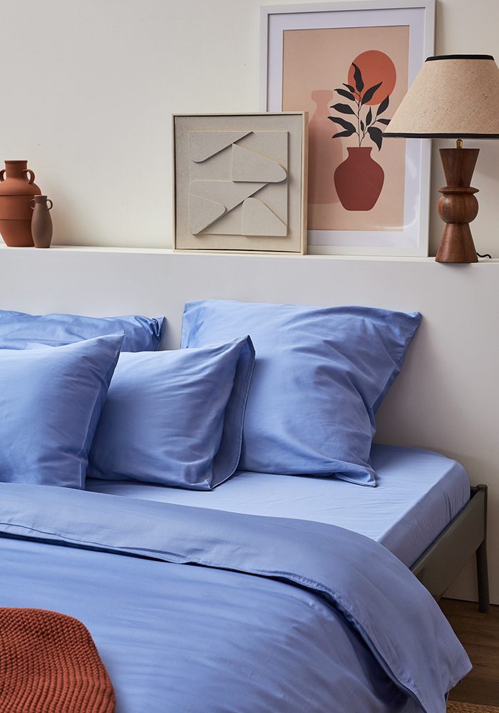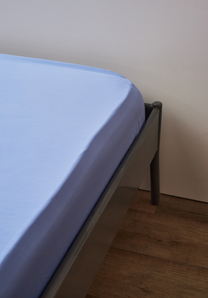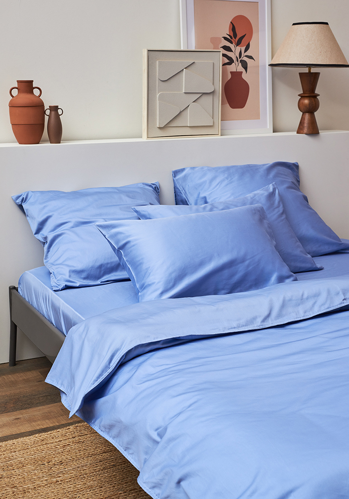 Простыня из премиального сатина джинсово-синего цвета из коллекции Essential, 240х270 см 5 фото
