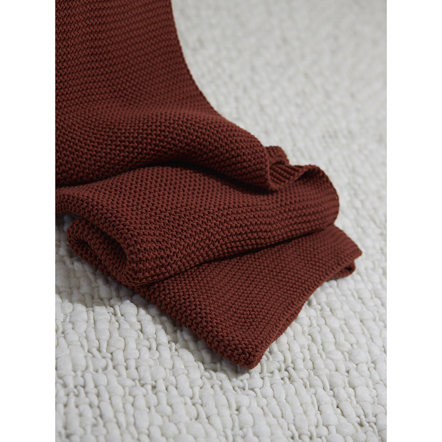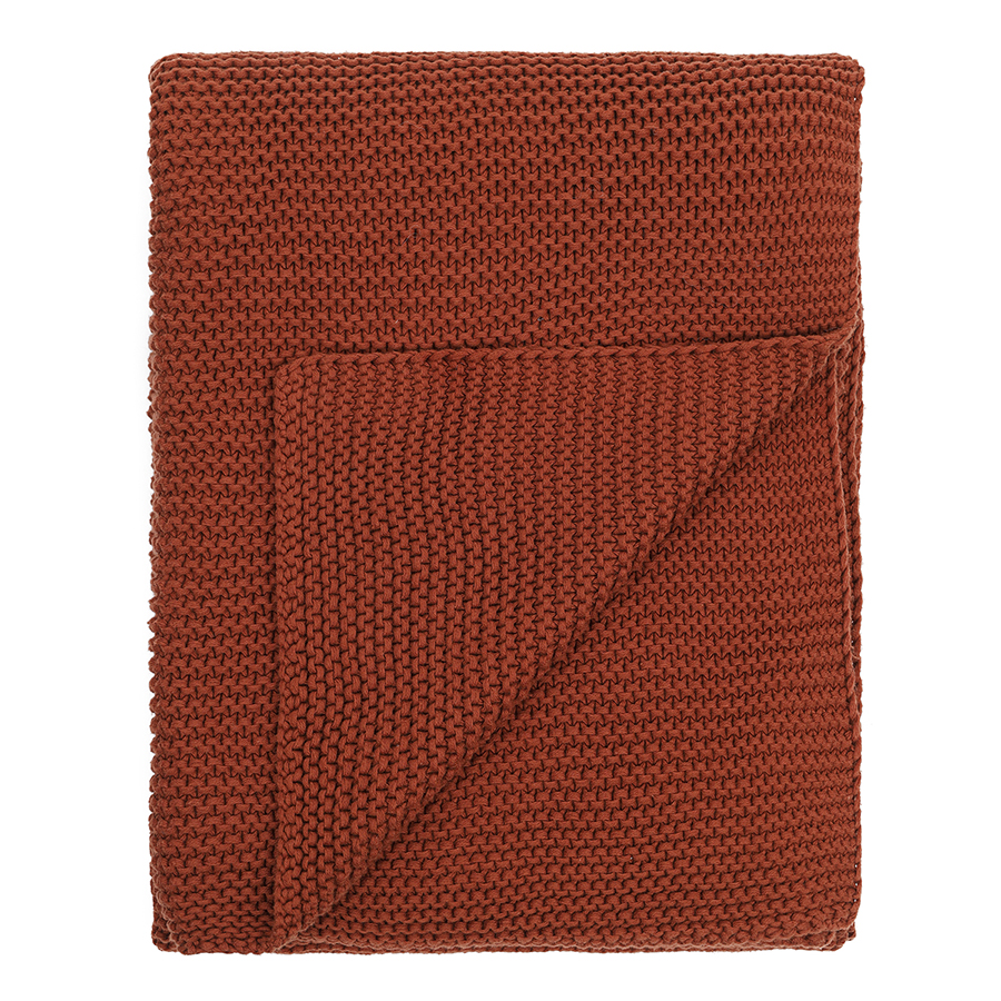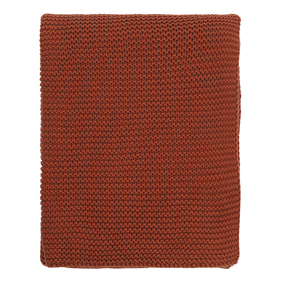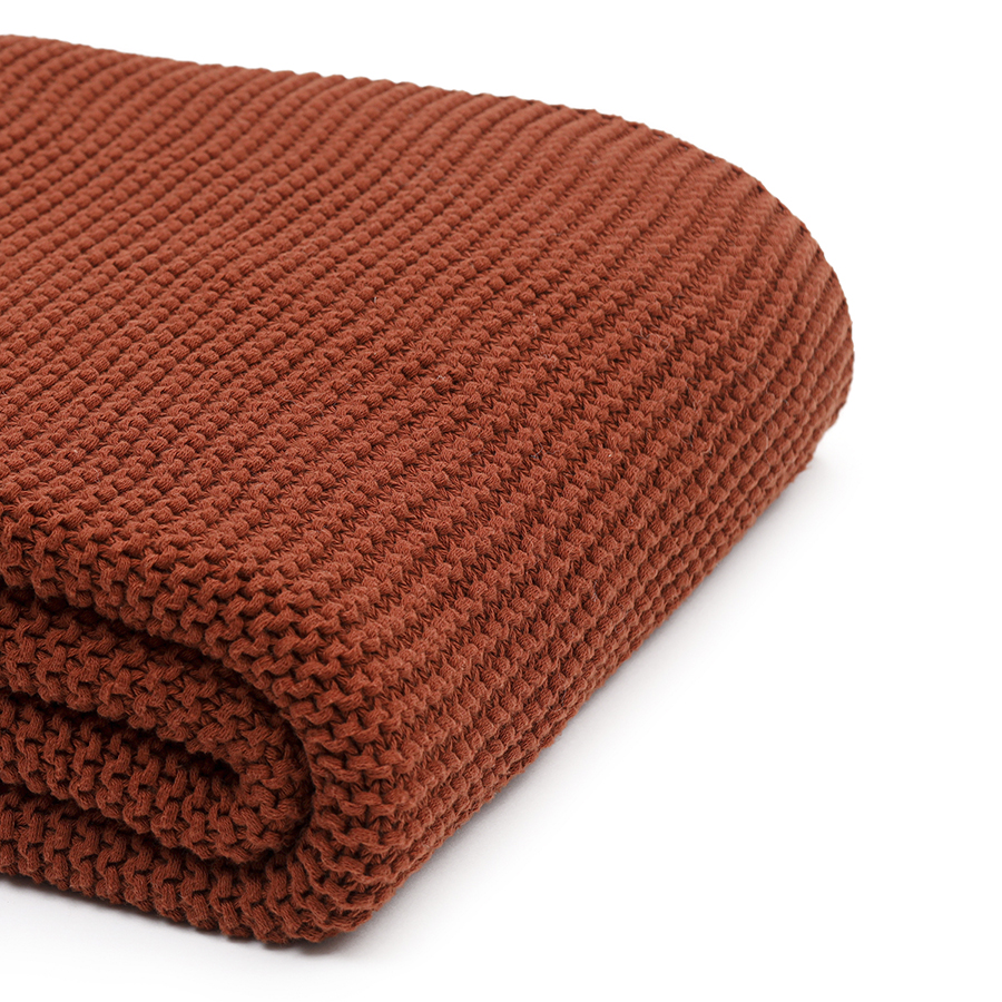 Плед из хлопка жемчужной вязки терракотового цвета из коллекции Essential, 130х180 см 10 фото