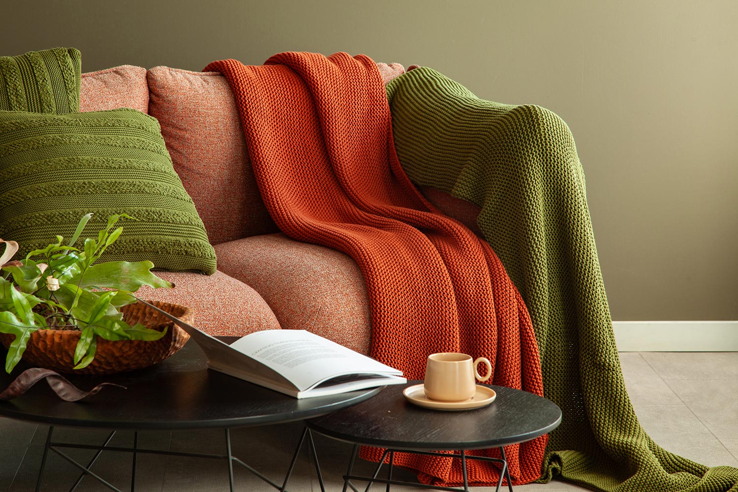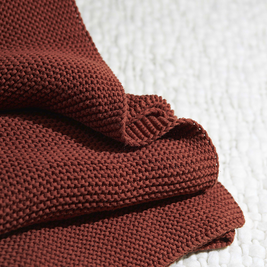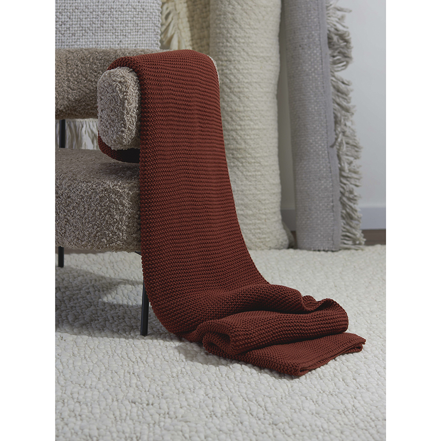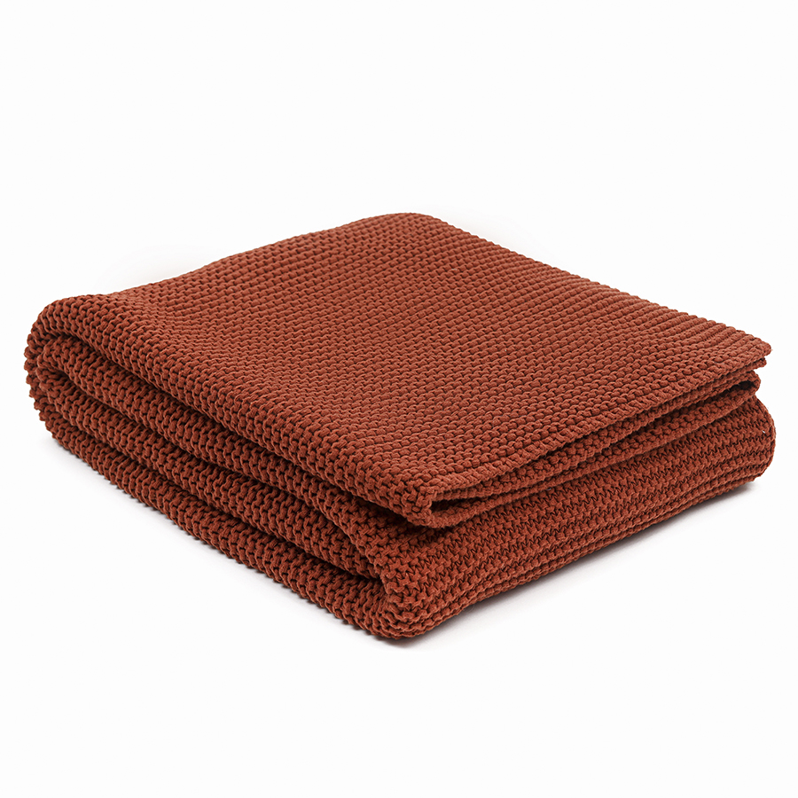 Плед из хлопка жемчужной вязки терракотового цвета из коллекции Essential, 130х180 см 10 фото