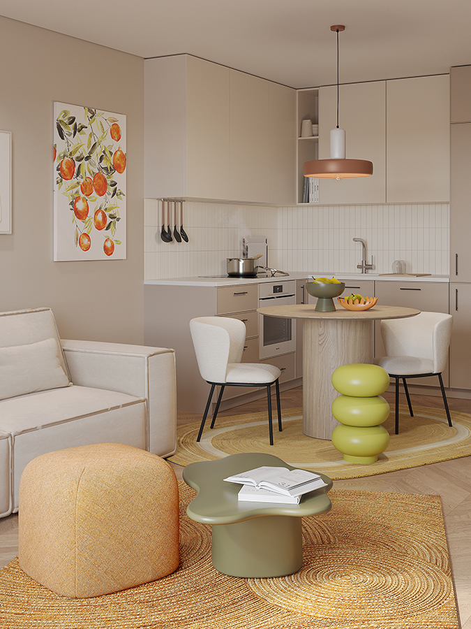 Зеркало настенное Lia, Ø61 см, бежевое 4 фото