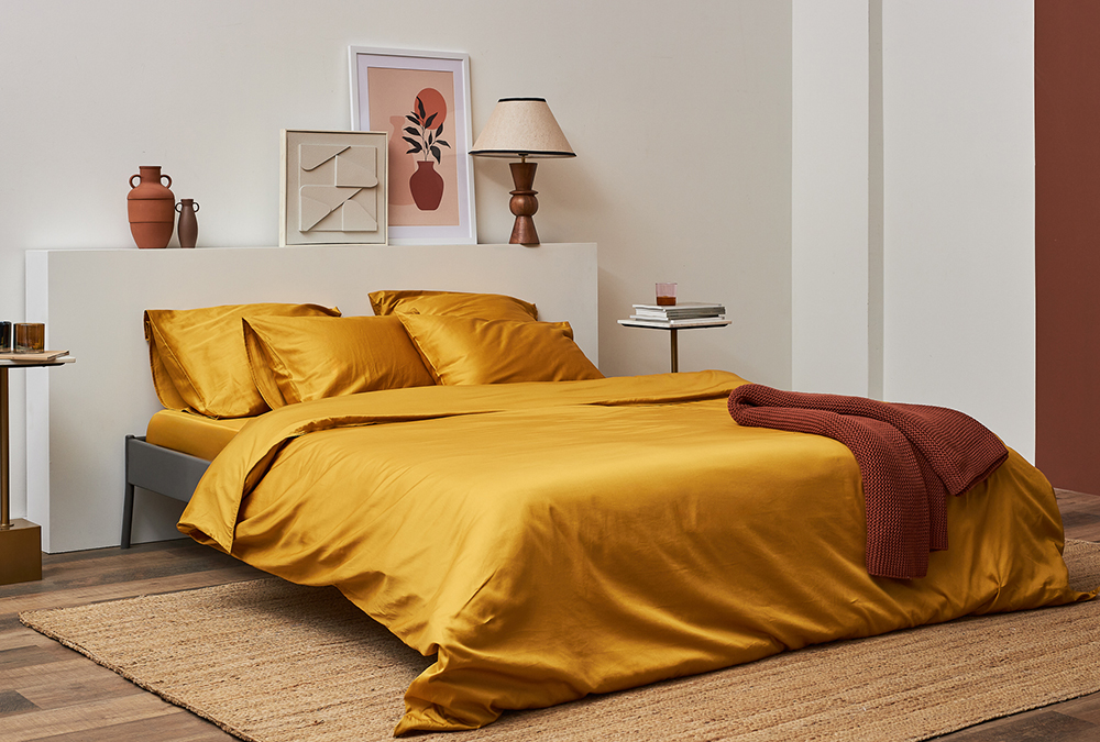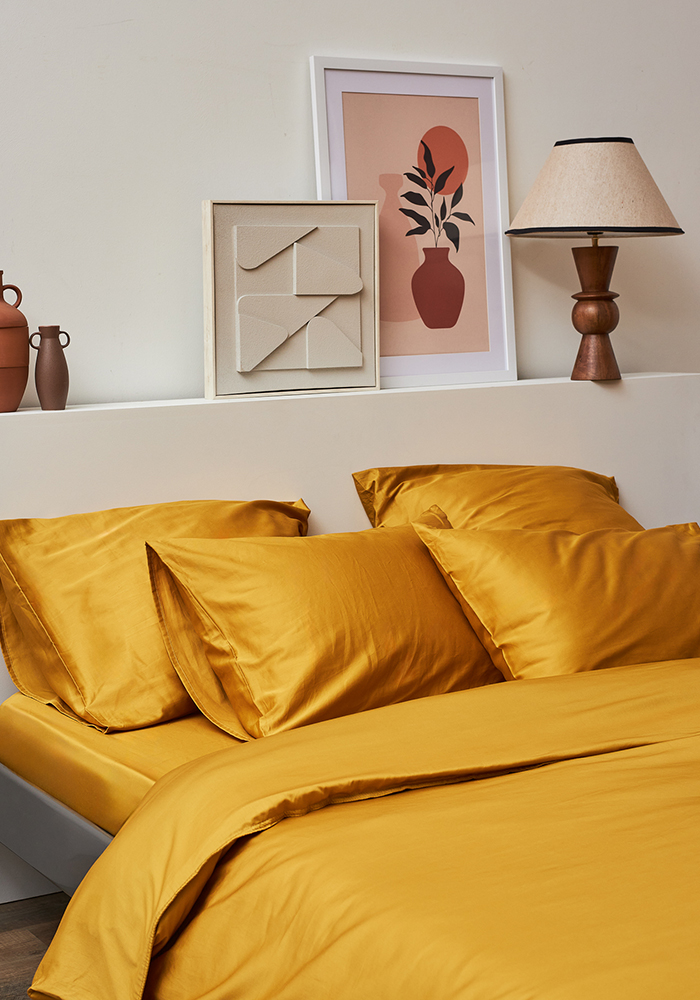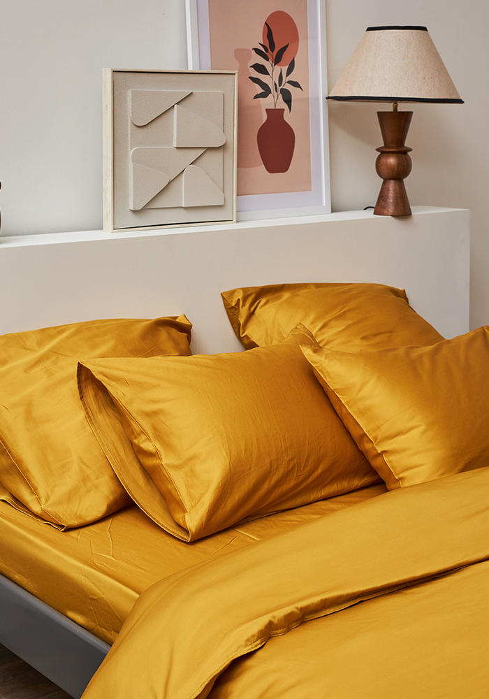 Набор наволочек из премиального сатина горчичного цвета из коллекции Essential, 50х70 см 10 фото