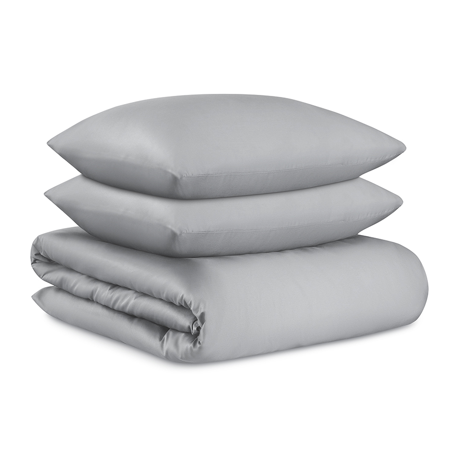 Комплект постельного белья из премиального сатина светло-серого цвета из коллекции Essential, 200х22 10 фото