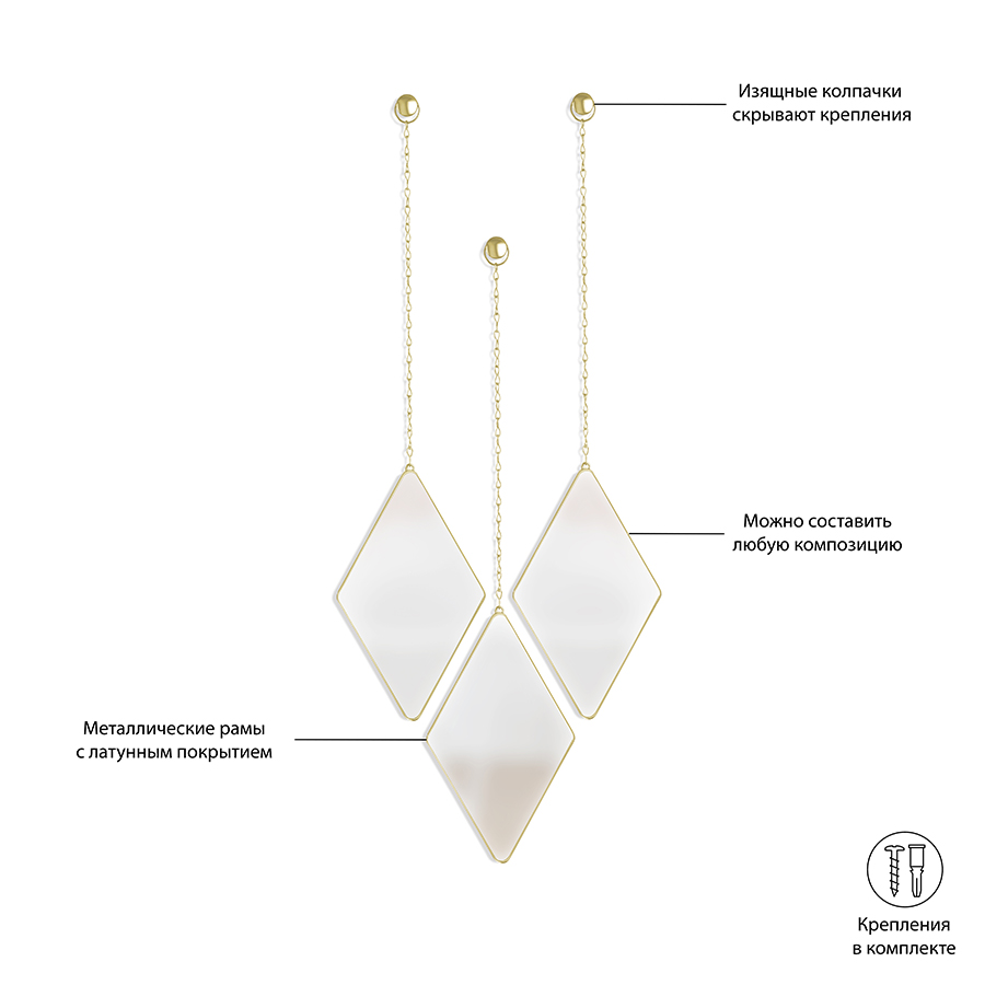 Набор зеркал Dima, матовая латунь, 3 шт. 7 фото