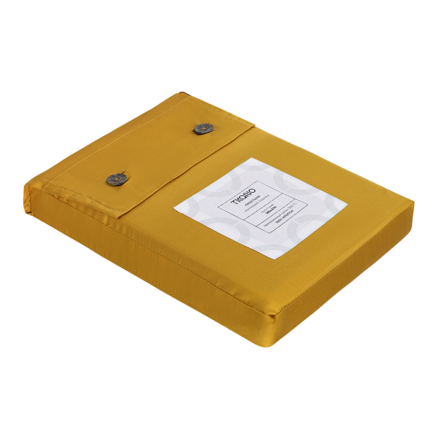 Простыня из премиального сатина горчичного цвета из коллекции Essential, 180х270 см 10 фото