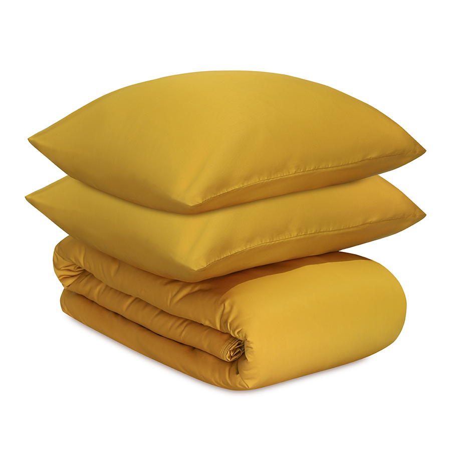 Комплект постельного белья из премиального сатина горчичного цвета из коллекции Essential, 200х220 см 10 фото