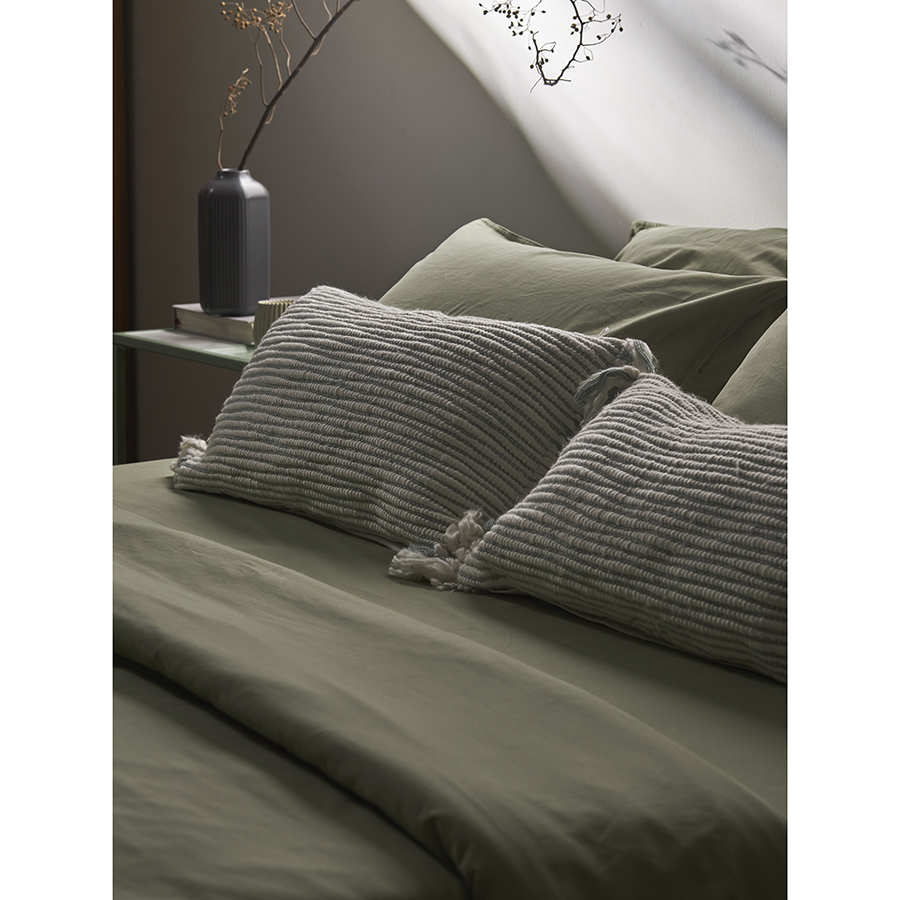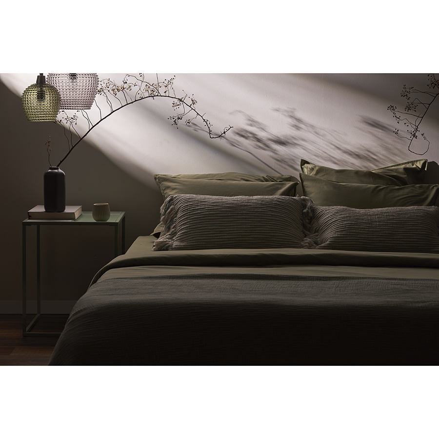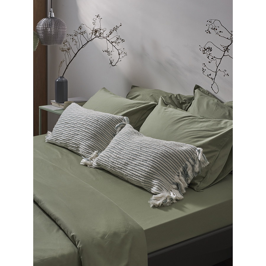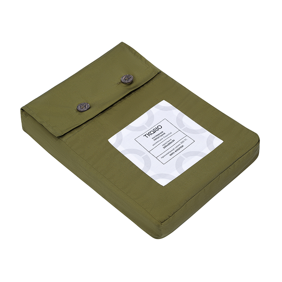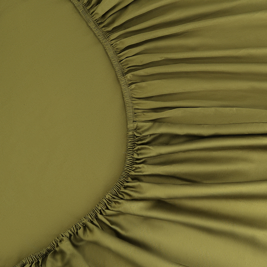 Простыня на резинке из премиального сатина оливкового цвета из коллекции Essential, 200х200х30 см 8 фото