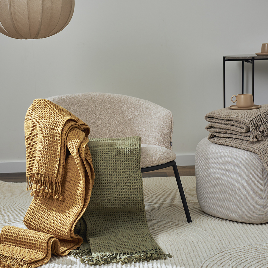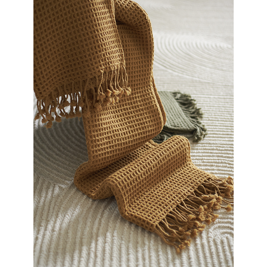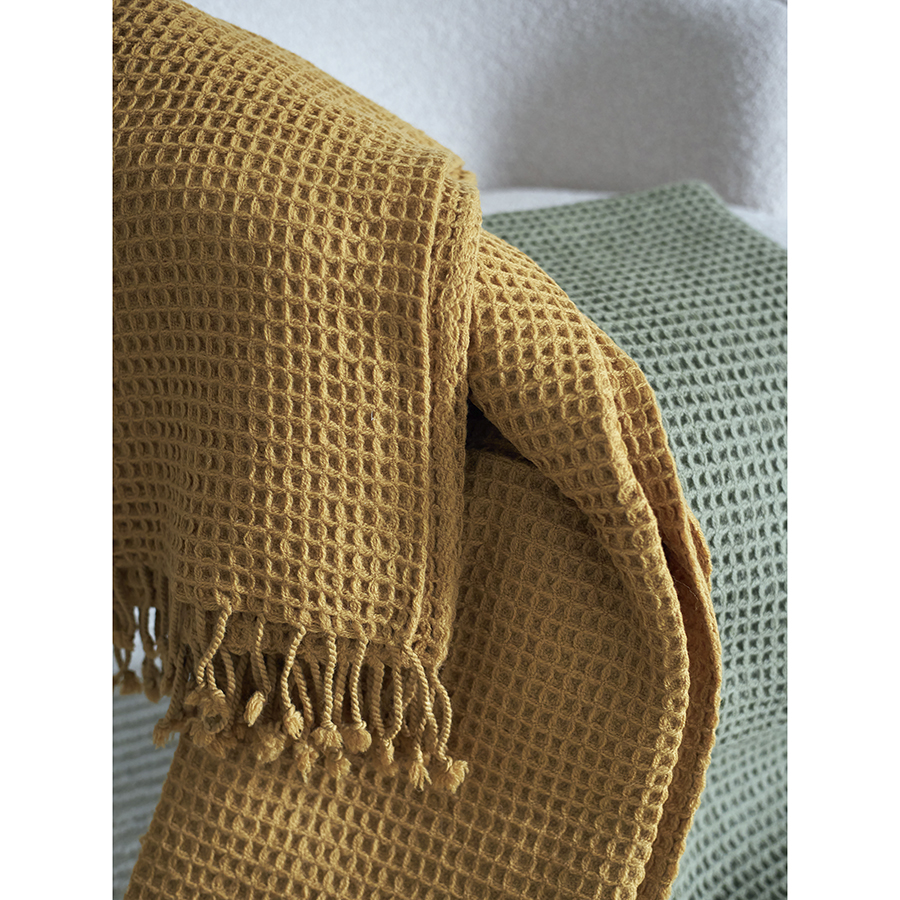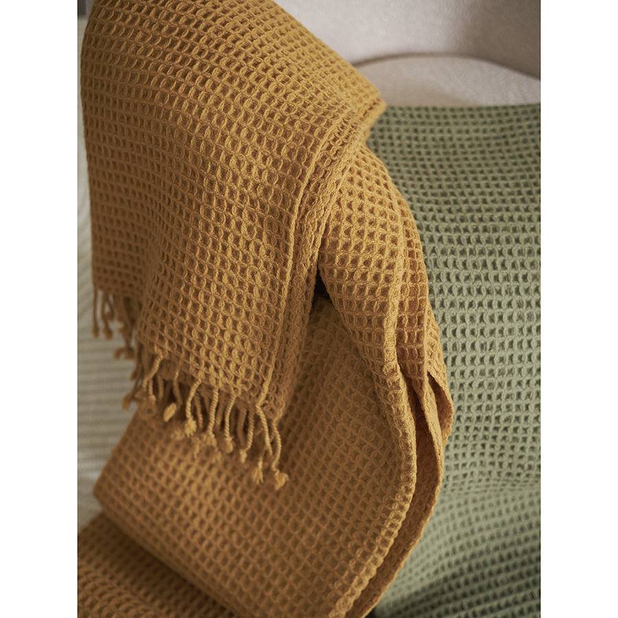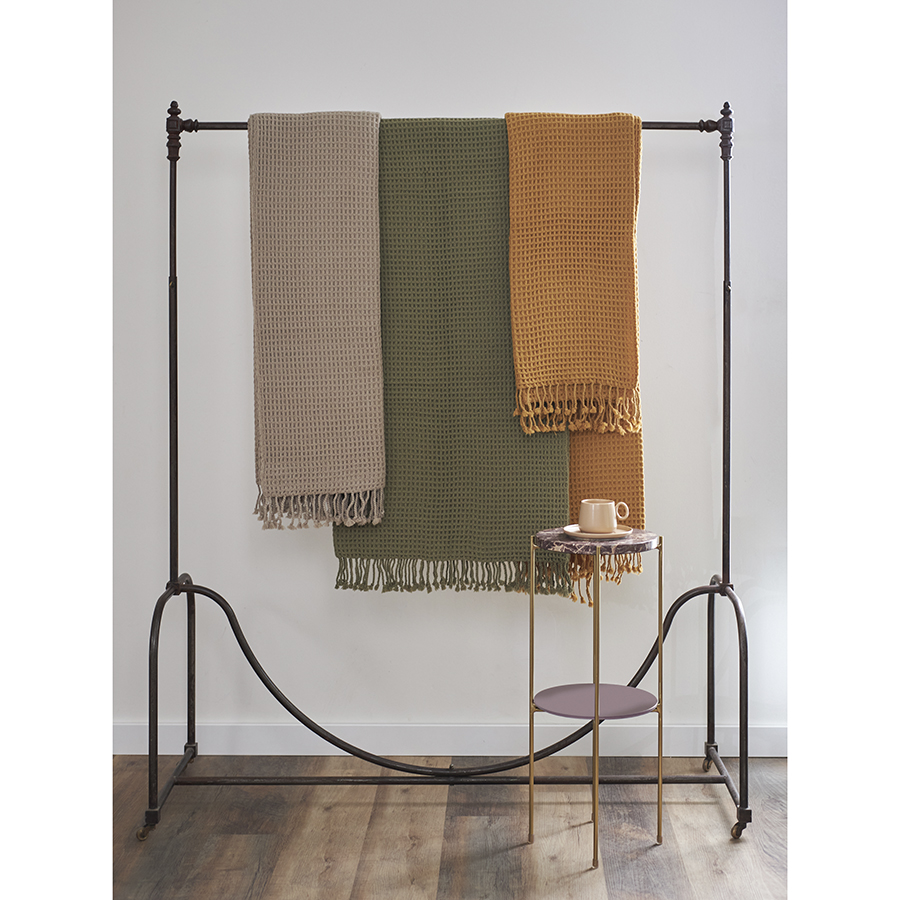 Покрывало вафельное из хлопка серо-бежевого цвета из коллекции Essential, 230х250 см 10 фото