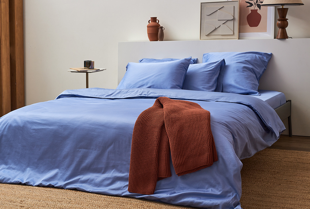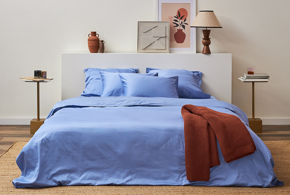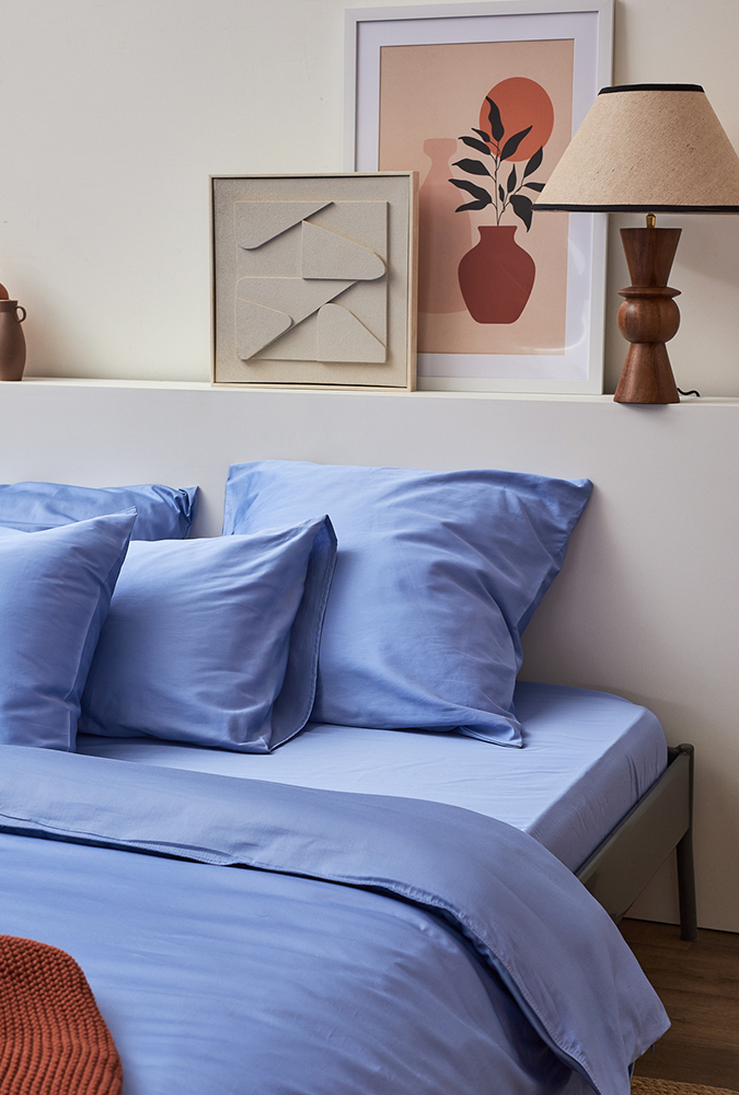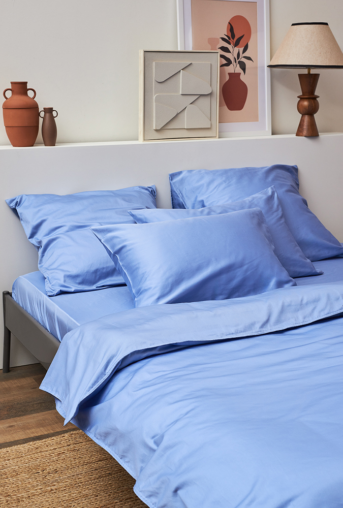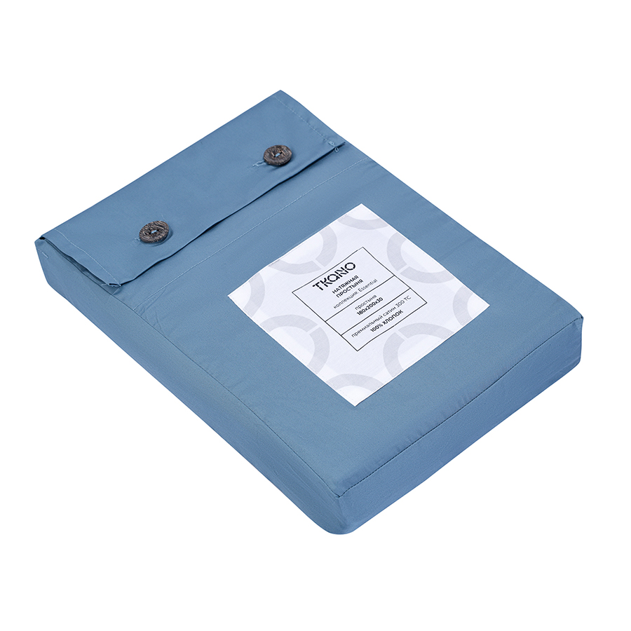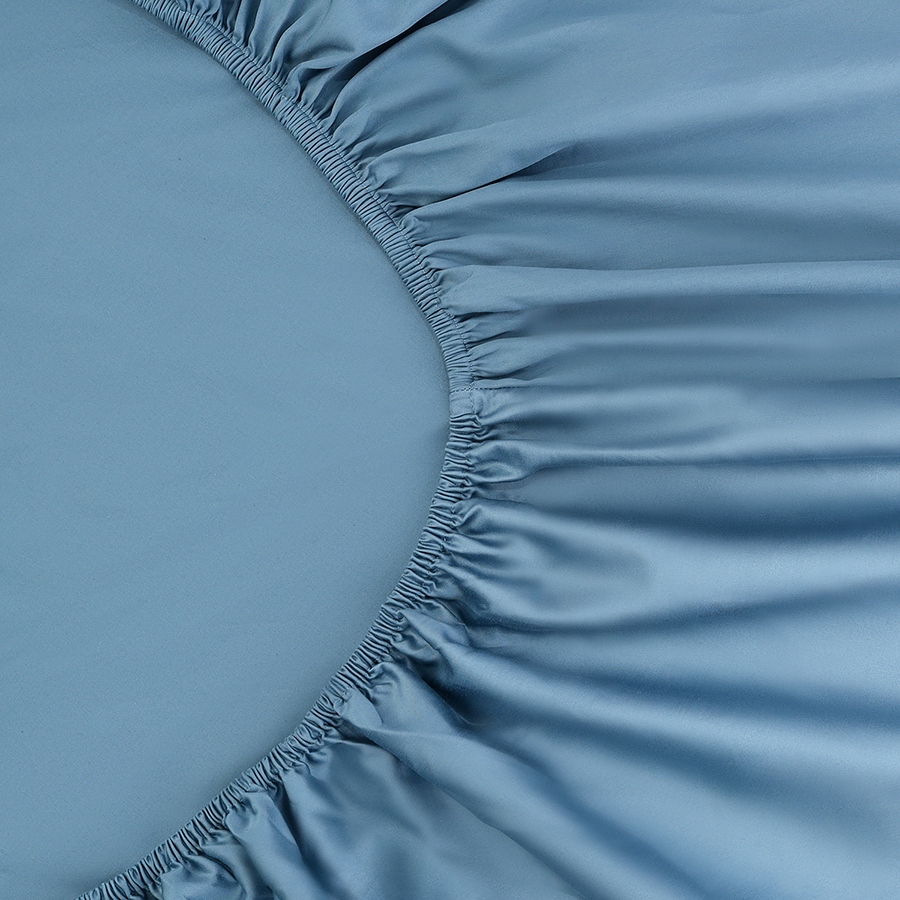 Простыня на резинке из премиального сатина джинсово-синего цвета из коллекции Essential,  180х200х30 8 фото