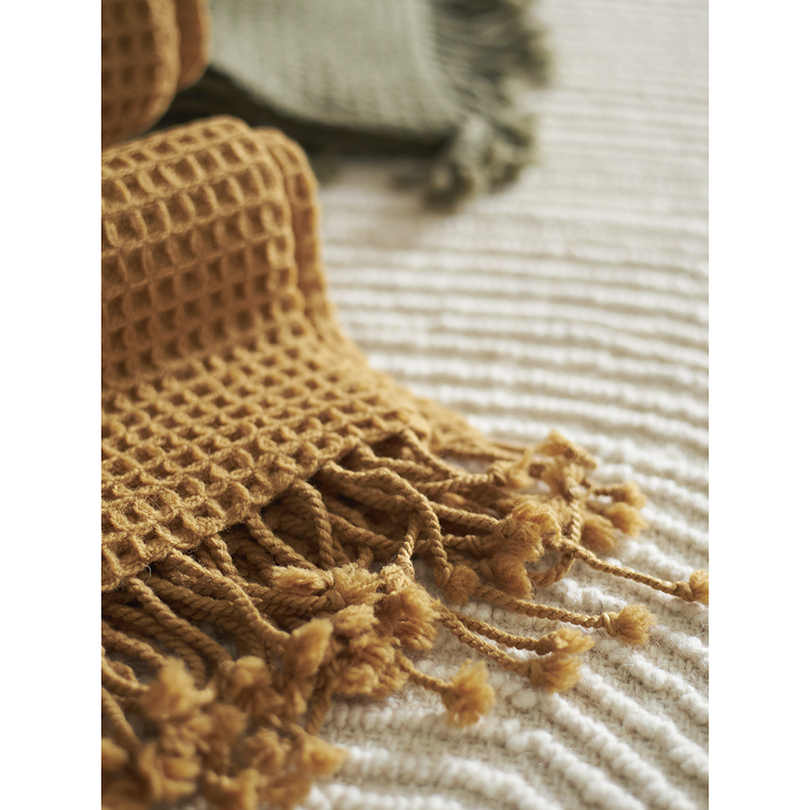 Плед из шерсти цвета охры из коллекции Essential, 130х180 см 10 фото