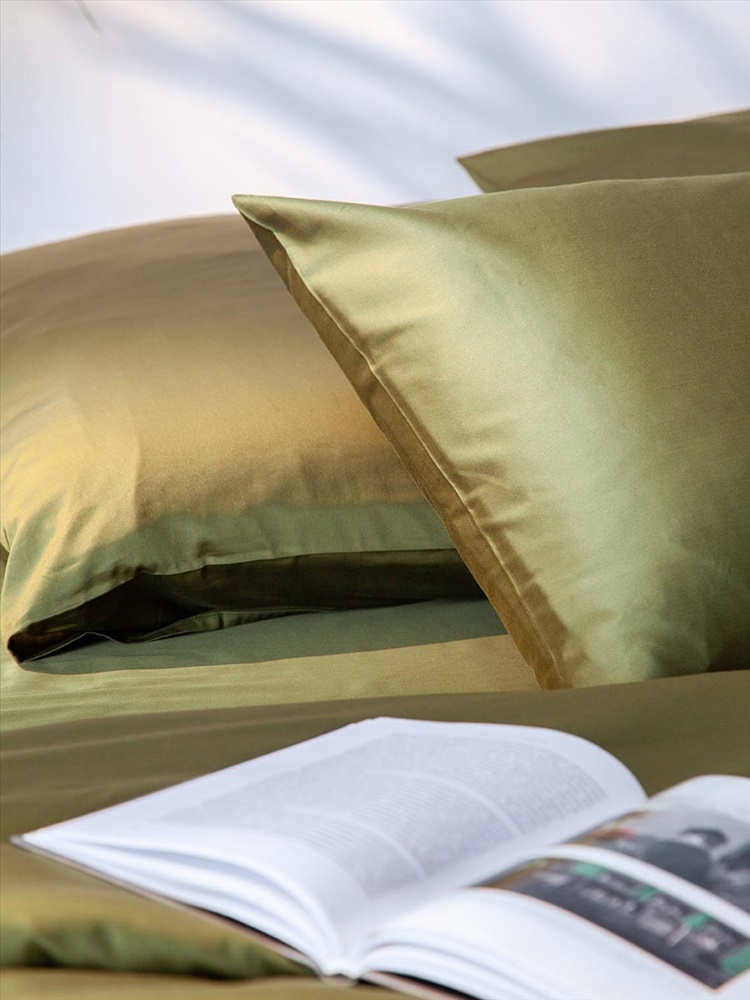 Комплект постельного белья из сатина из коллекции Meditation, olive, 150х200 см 10 фото