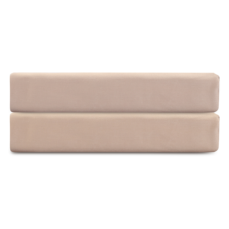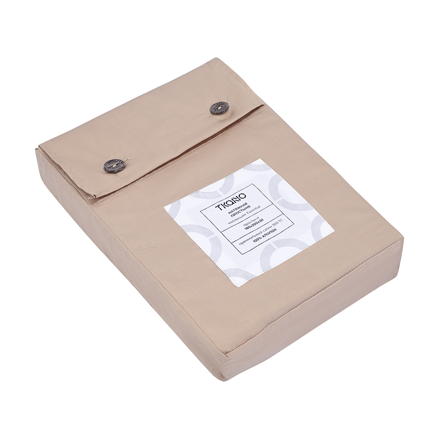 Простыня на резинке из премиального сатина бежевого цвета из коллекции Essential,  180х200х30 см 8 фото