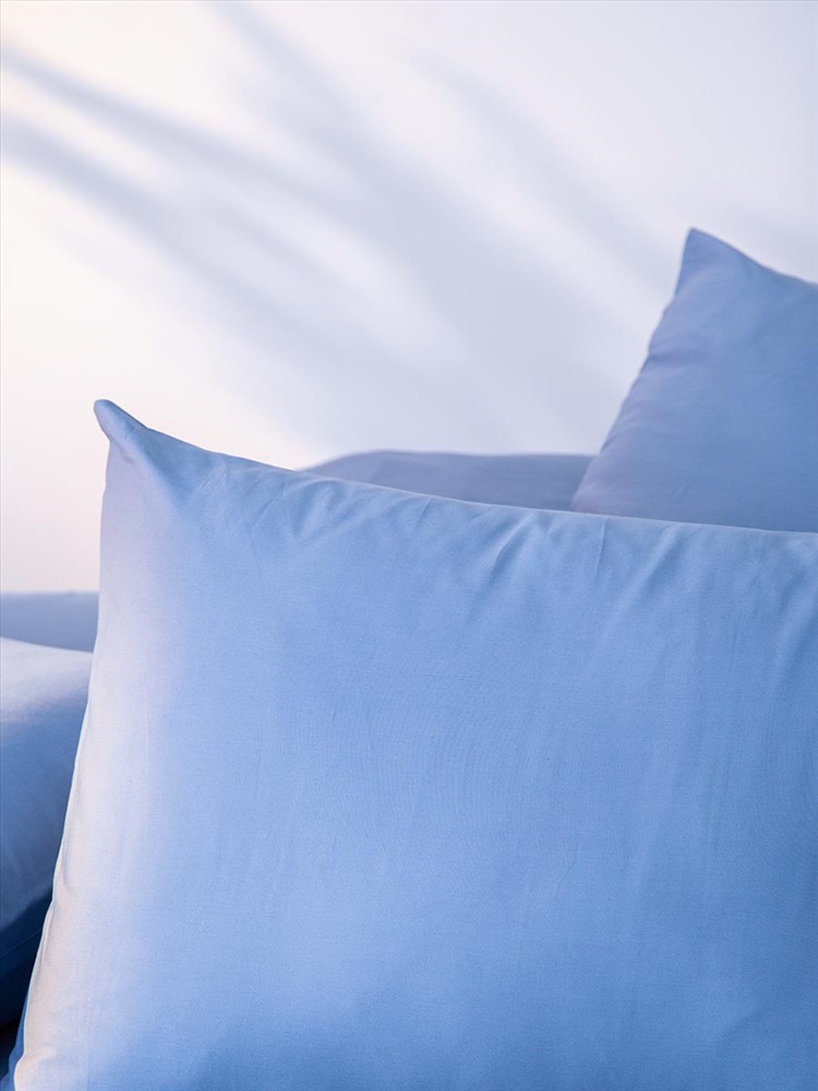 Набор наволочек из премиального сатина джинсово-синего цвета из коллекции Essential, 70х70 см 6 фото