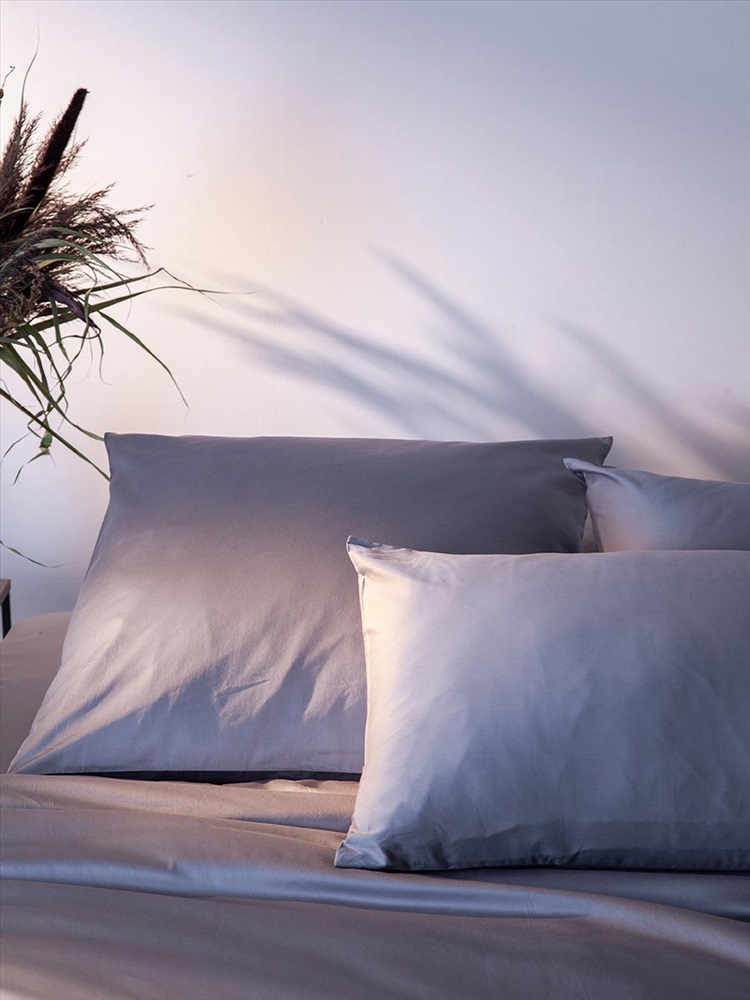Комплект постельного белья из премиального сатина светло-серого цвета из коллекции Essential, 150х20 10 фото