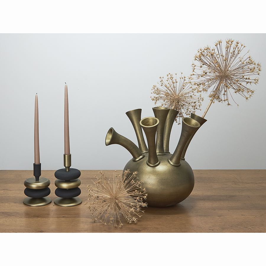 Подсвечник Stone, 20 см, черный/античная латунь 6 фото