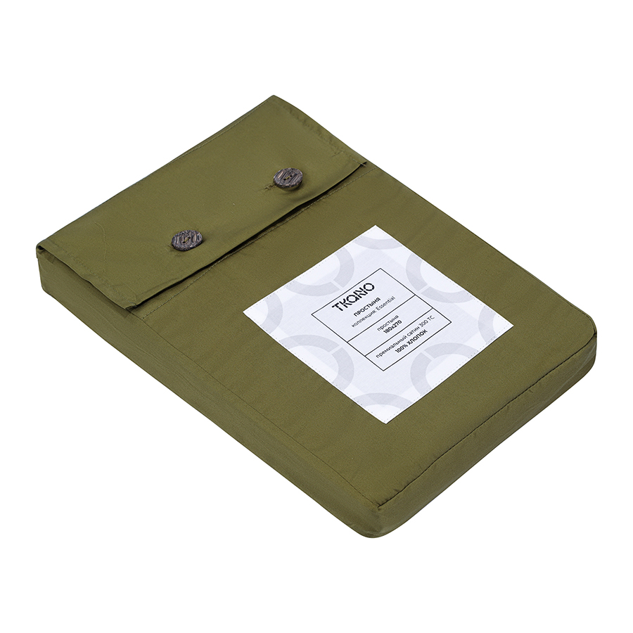 Простыня из премиального сатина оливкового цвета из коллекции Essential, 180х270 см 5 фото
