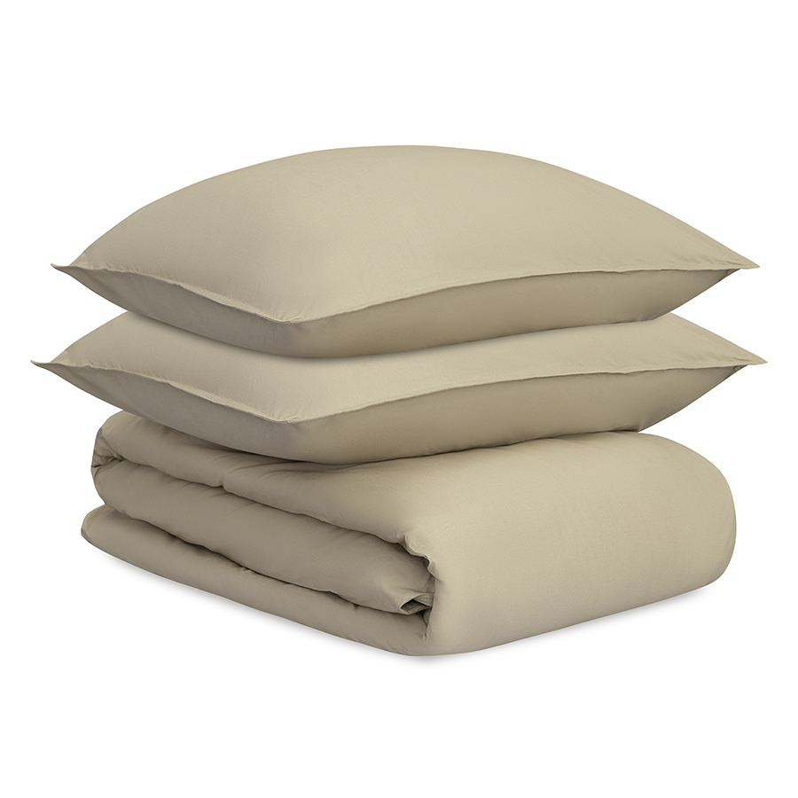 Комплект постельного белья из стираного перкаля бежево-серого цвета из коллекции Essential, 150х200 см 10 фото