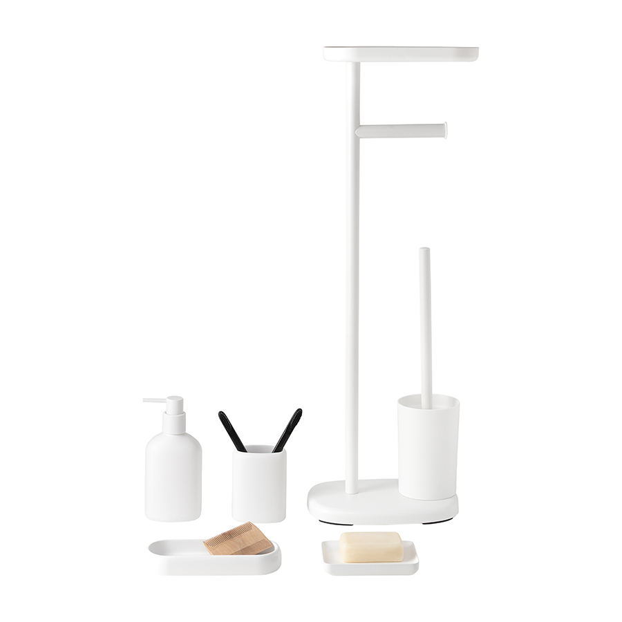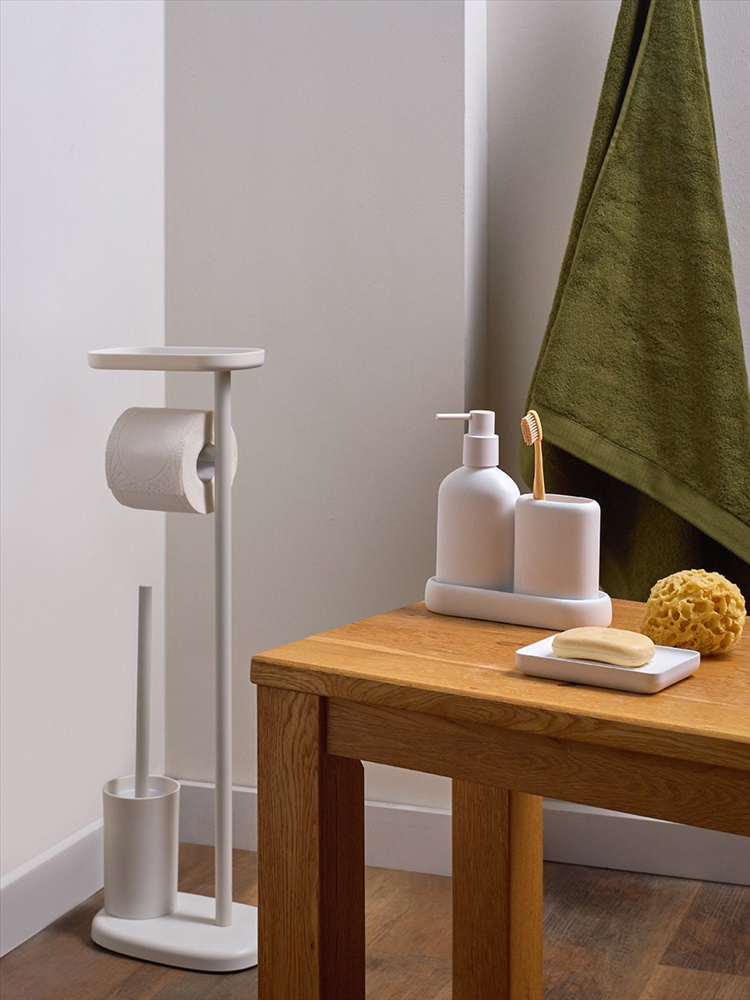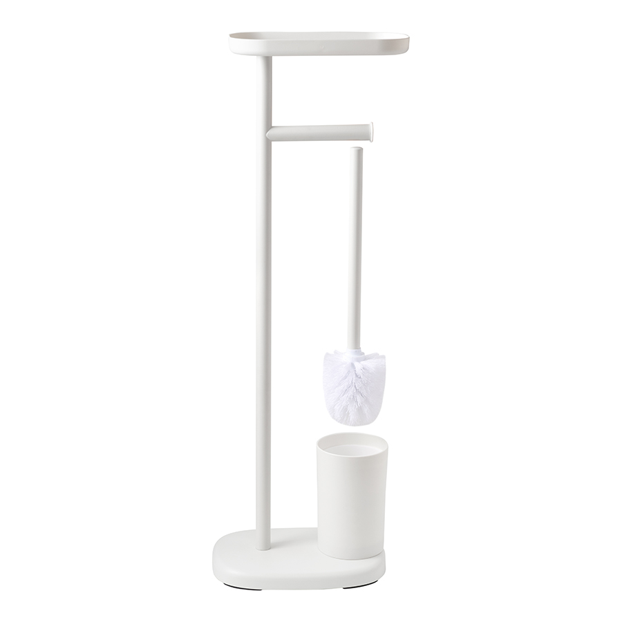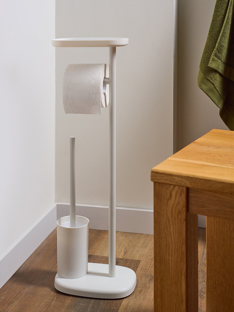 Держатель для туалетной бумаги с полочкой и ершиком Slim, белый 6 фото