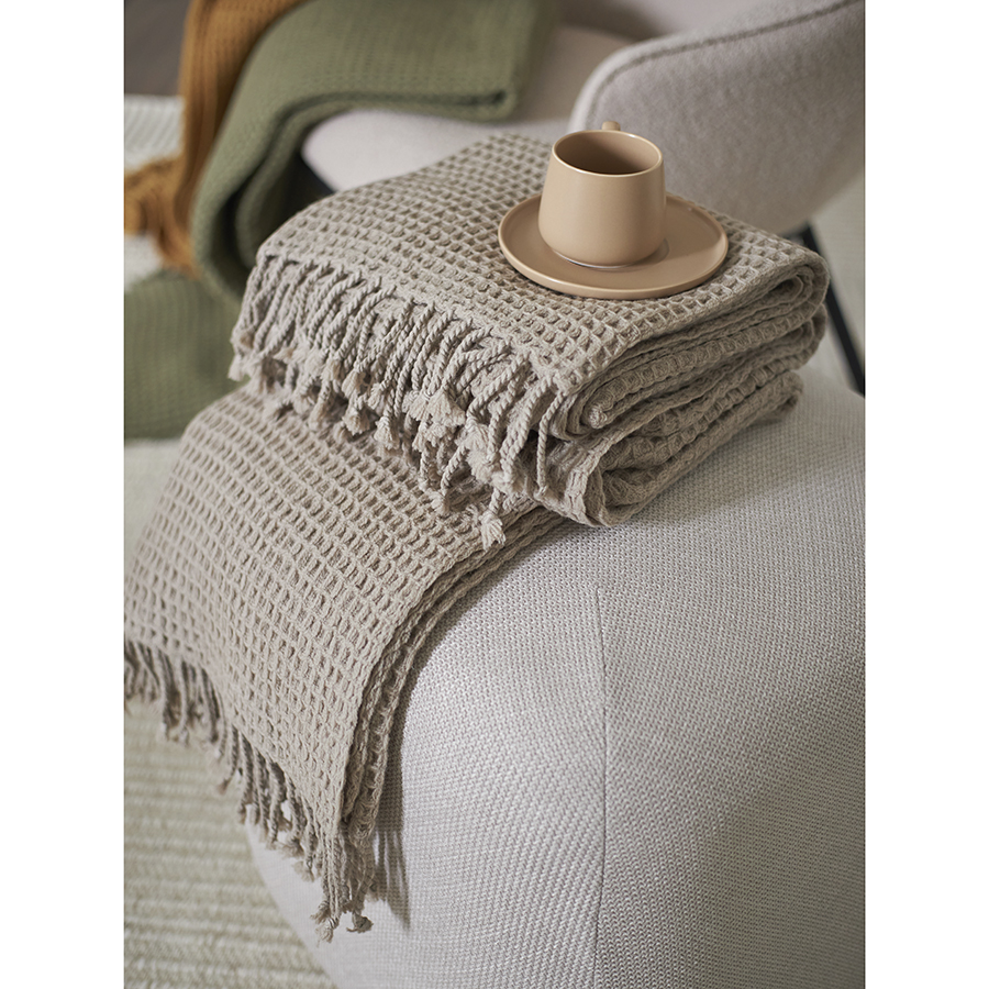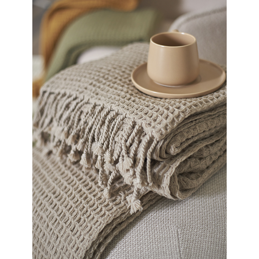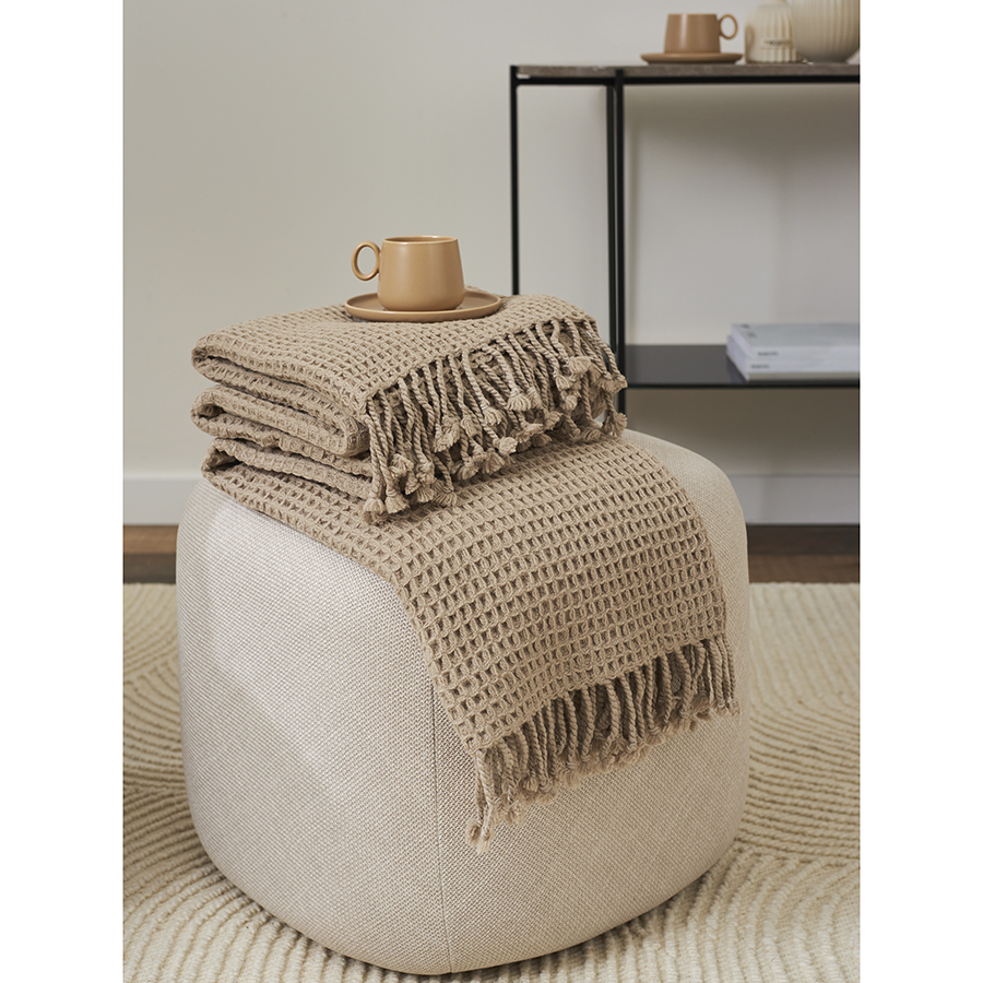 Плед из шерсти бежево-серого цвета из коллекции Essential, 130х180 см 10 фото