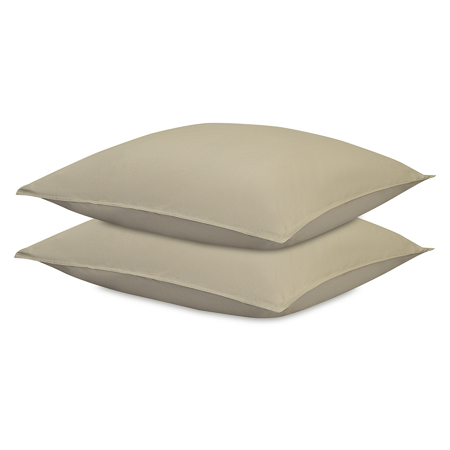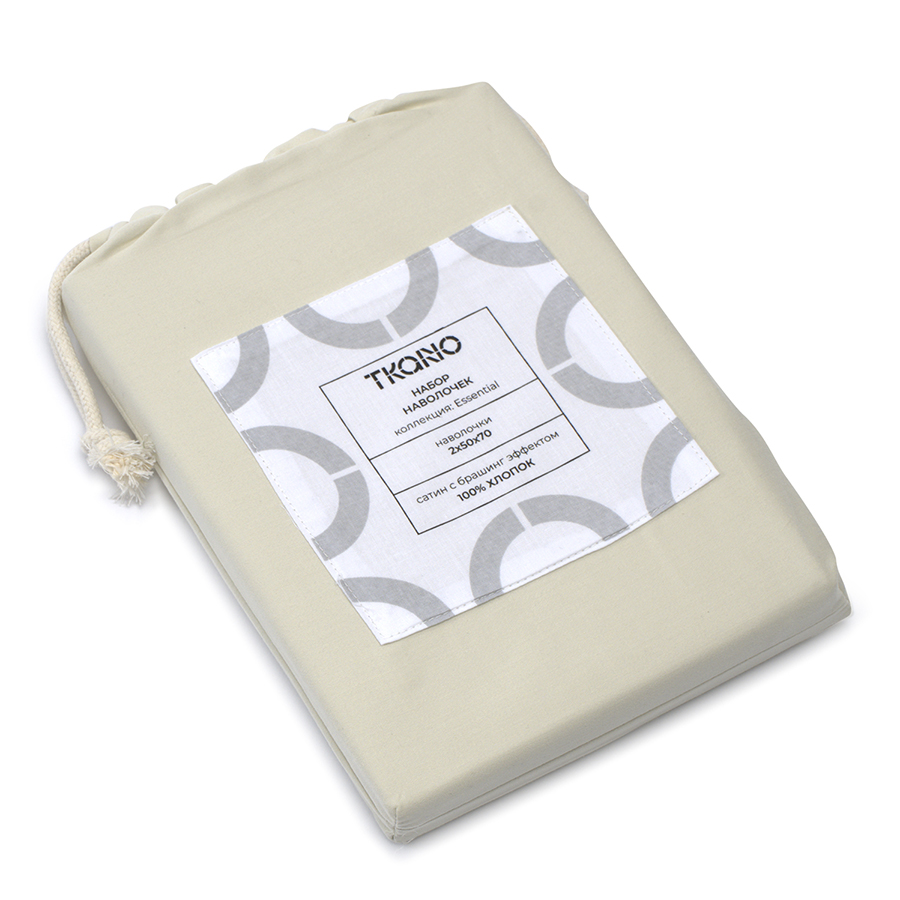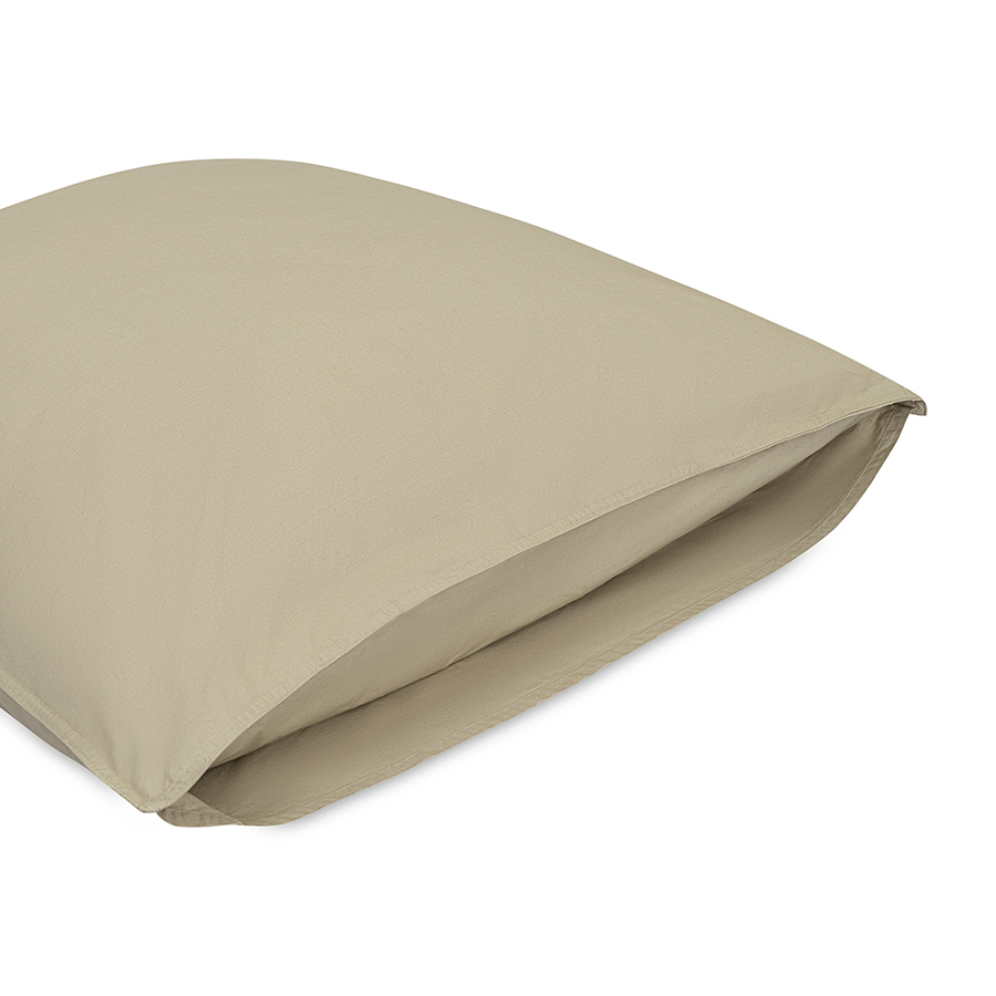 Набор наволочек из стираного перкаля бежево-серого цвета из коллекции Essential, 70х70 см 10 фото