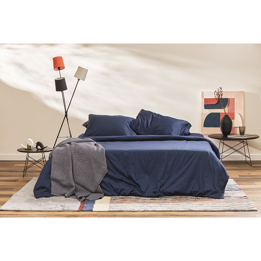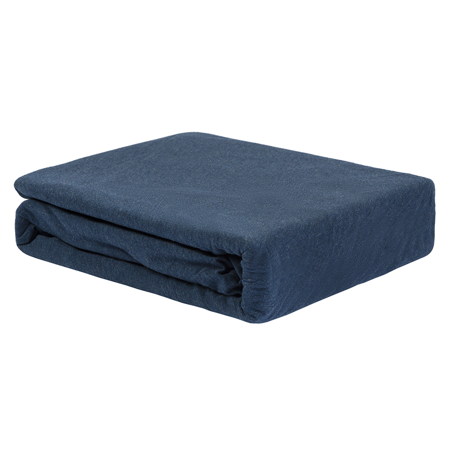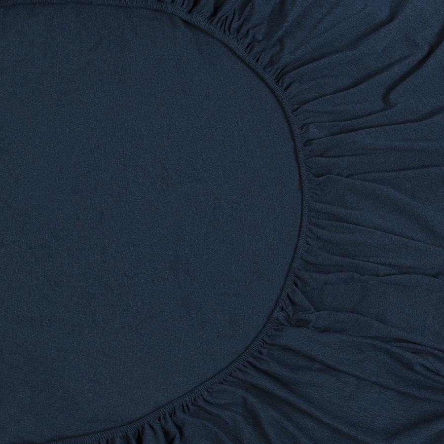 Простыня на резинке из хлопкового трикотажа темно-синего цвета из коллекции Essential, 180х200х30 см 10 фото