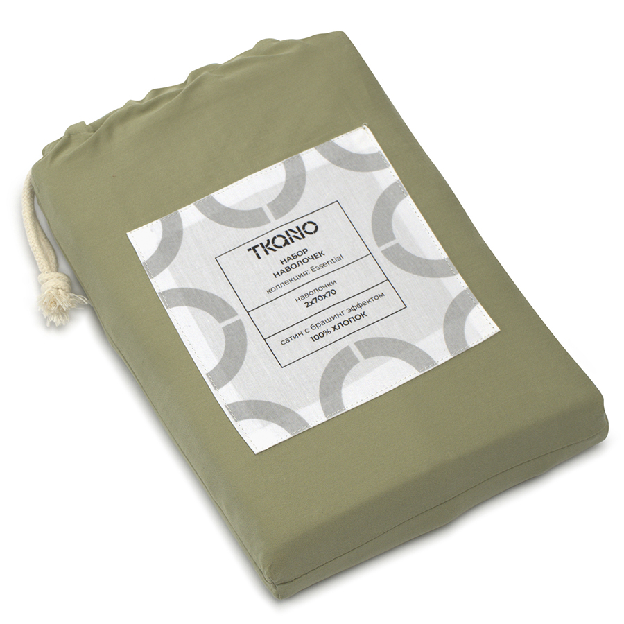 Набор из двух наволочек из сатина цвета шалфея с брашинг-эффектом из коллекции Essential, 70х70 см 9 фото