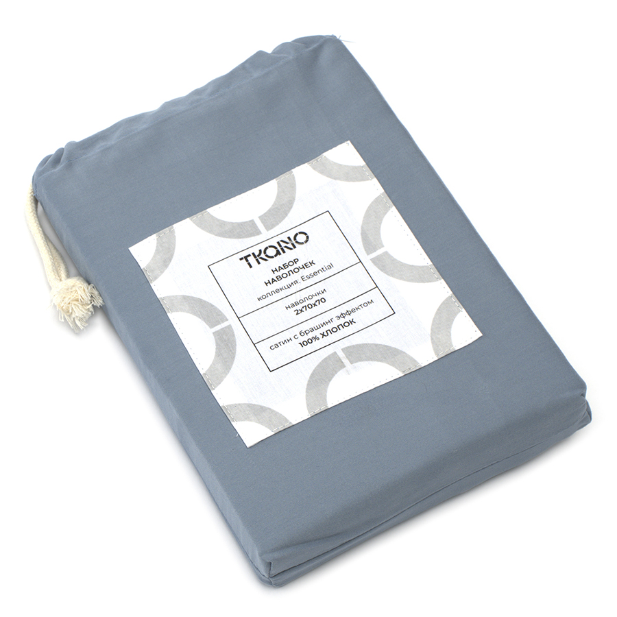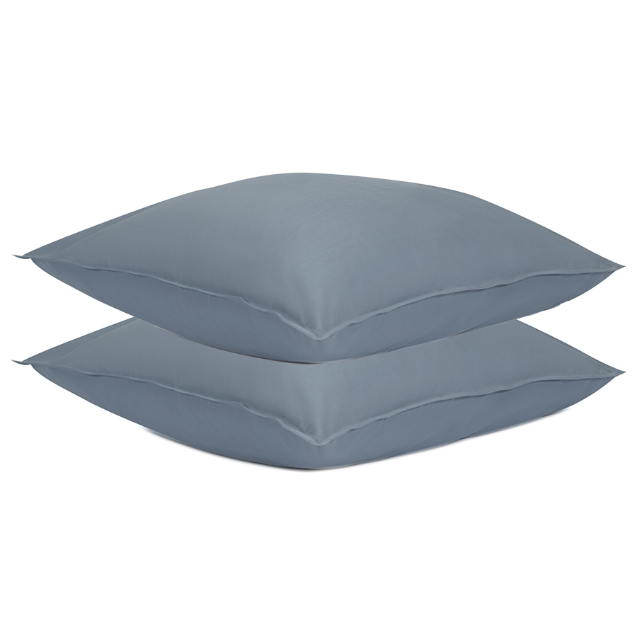 Набор из двух наволочек из сатина джинсово-синего цвета с брашинг-эффектом из коллекции Essential, 70х70 см 10 фото