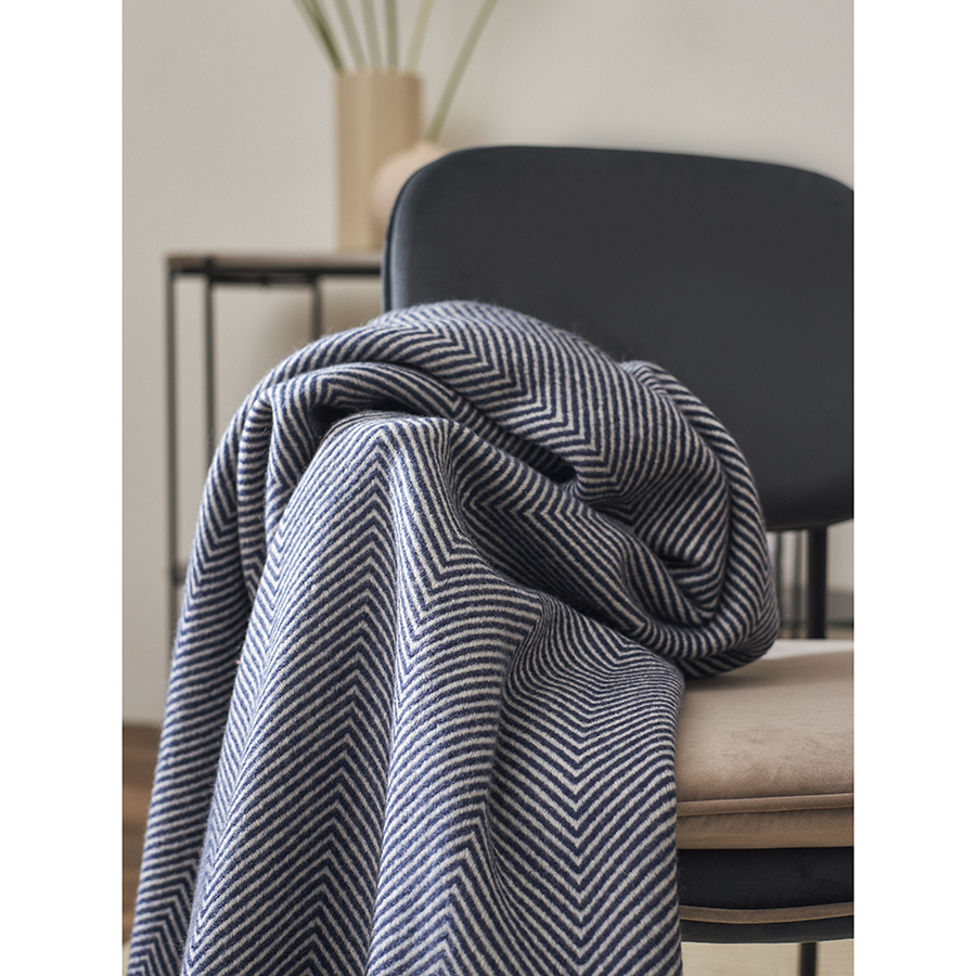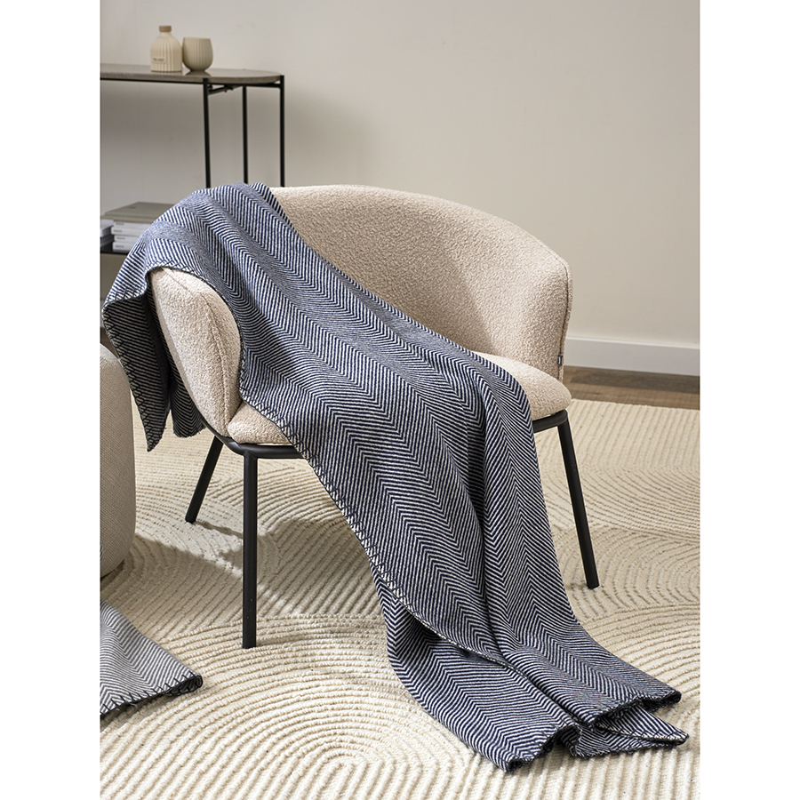 Плед из шерсти мериноса темно-синего цвета из коллекции Essential, 130х180 см 10 фото