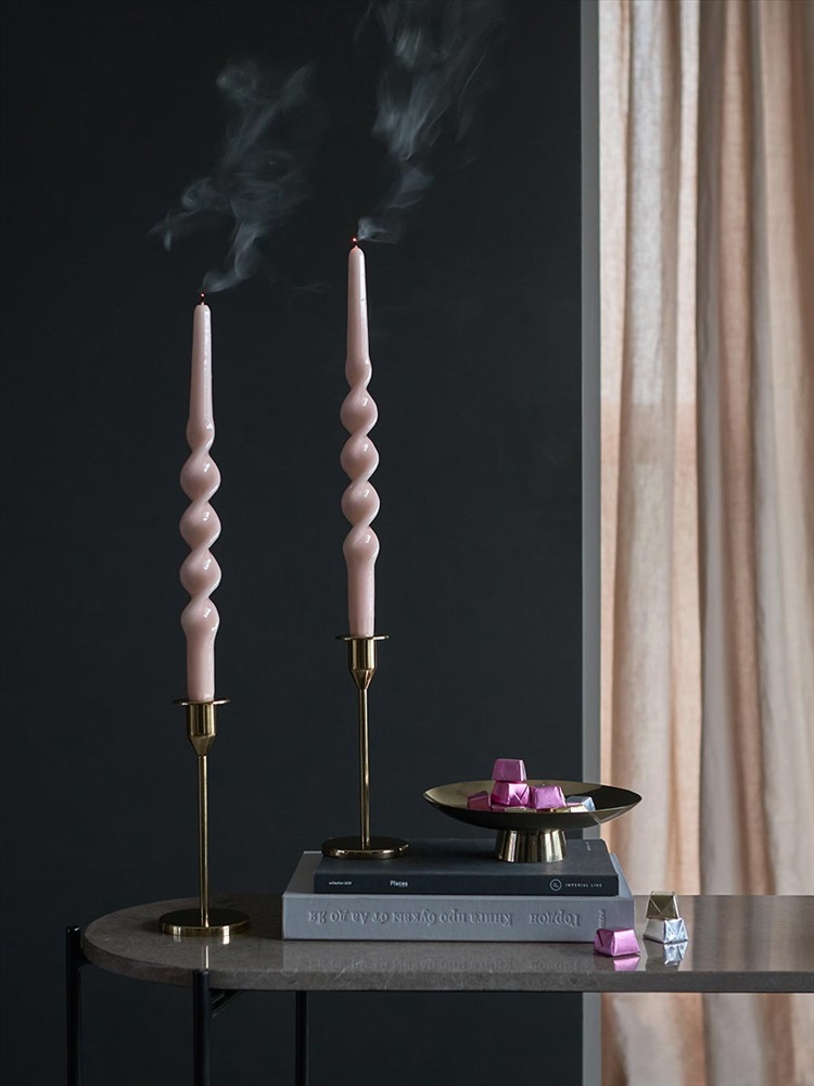 Набор из двух свечей цвета пыльной розы из коллекции Essential, 35 см 8 фото