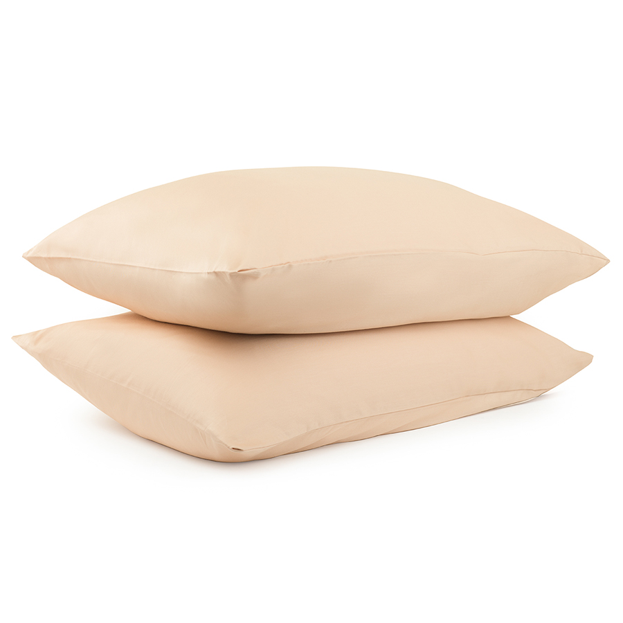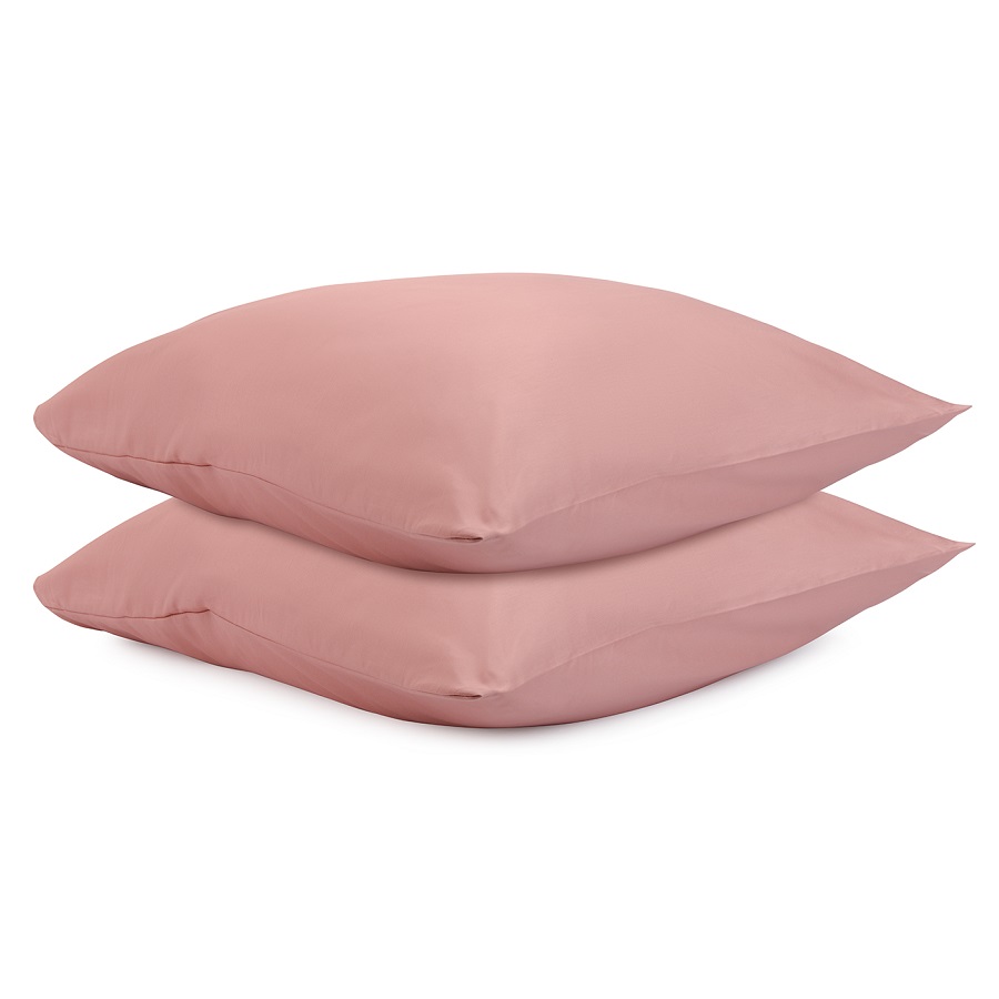 Набор из двух наволочек из сатина бежево-розового из коллекции Essential, 70х70 см 8 фото