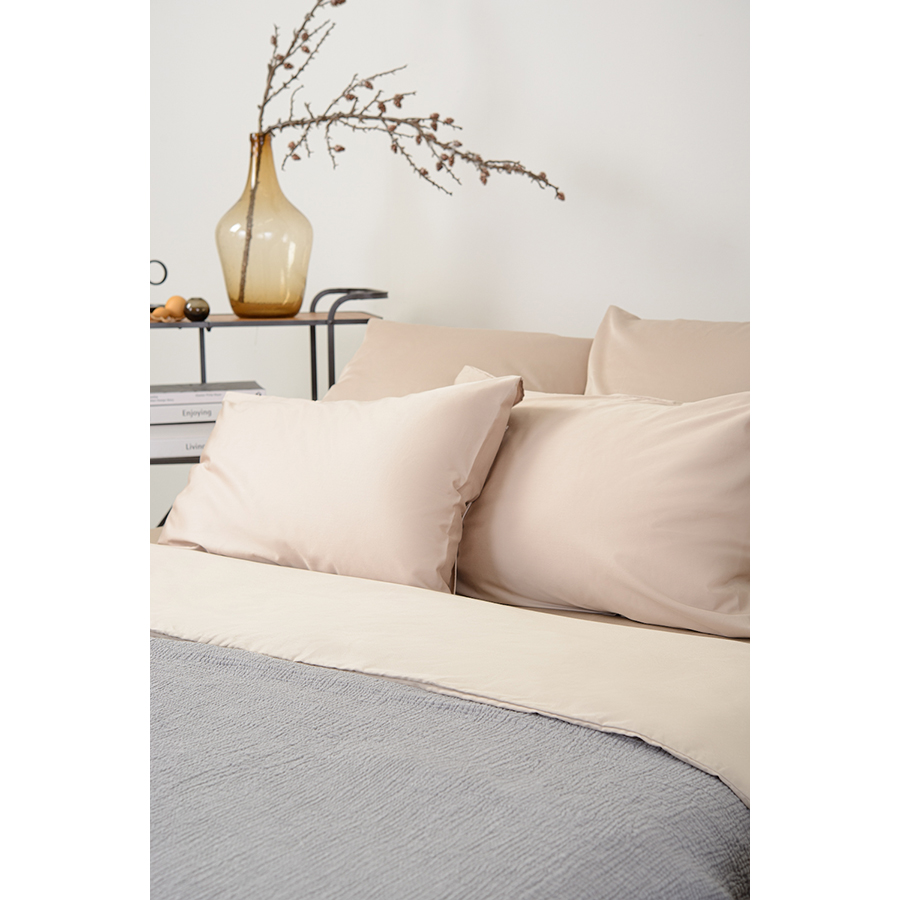 Набор из двух наволочек из сатина бежевого цвета из коллекции Essential, 70х70 см 7 фото
