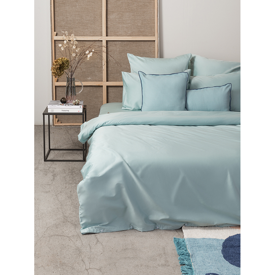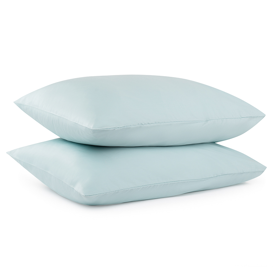 Набор из двух наволочек из сатина голубого цвета из коллекции Essential, 50х70 см 6 фото