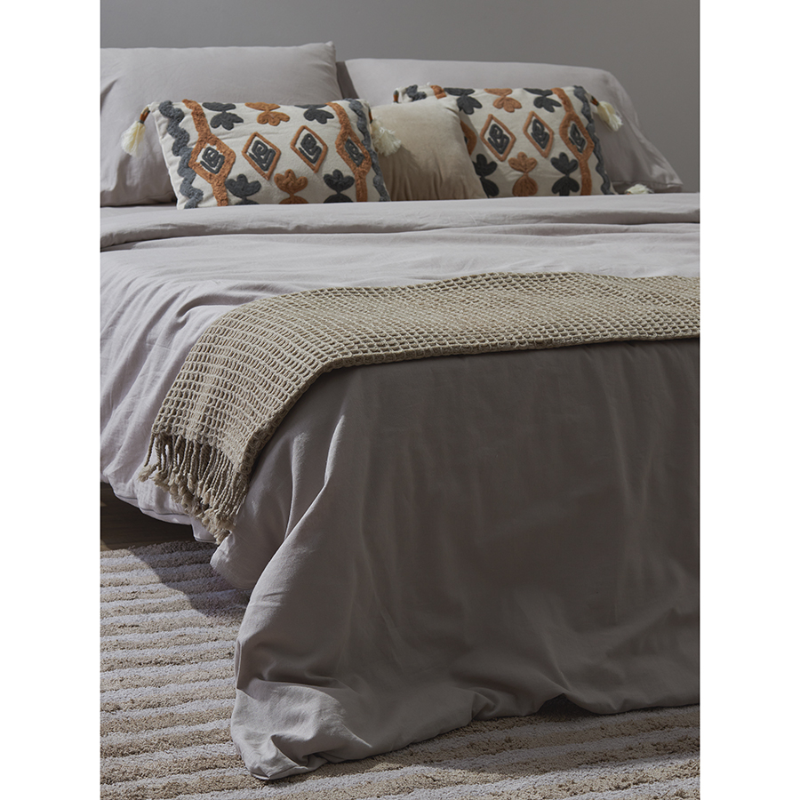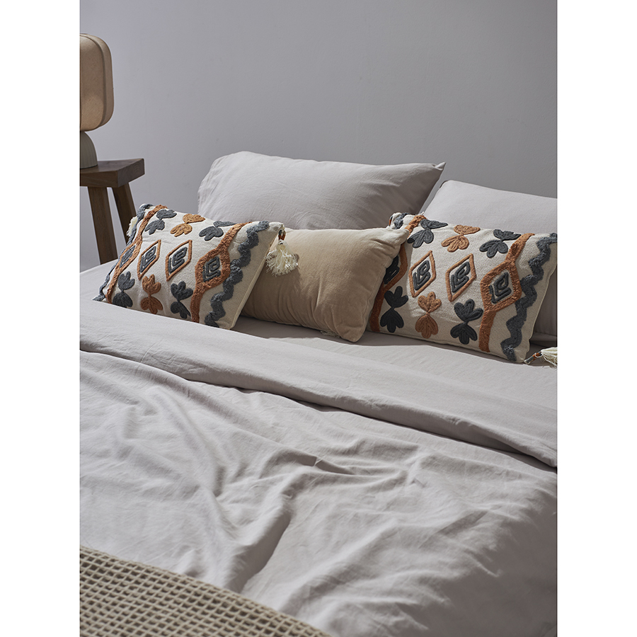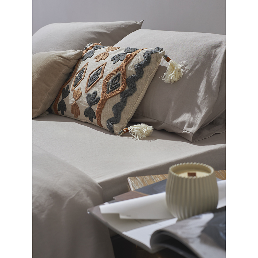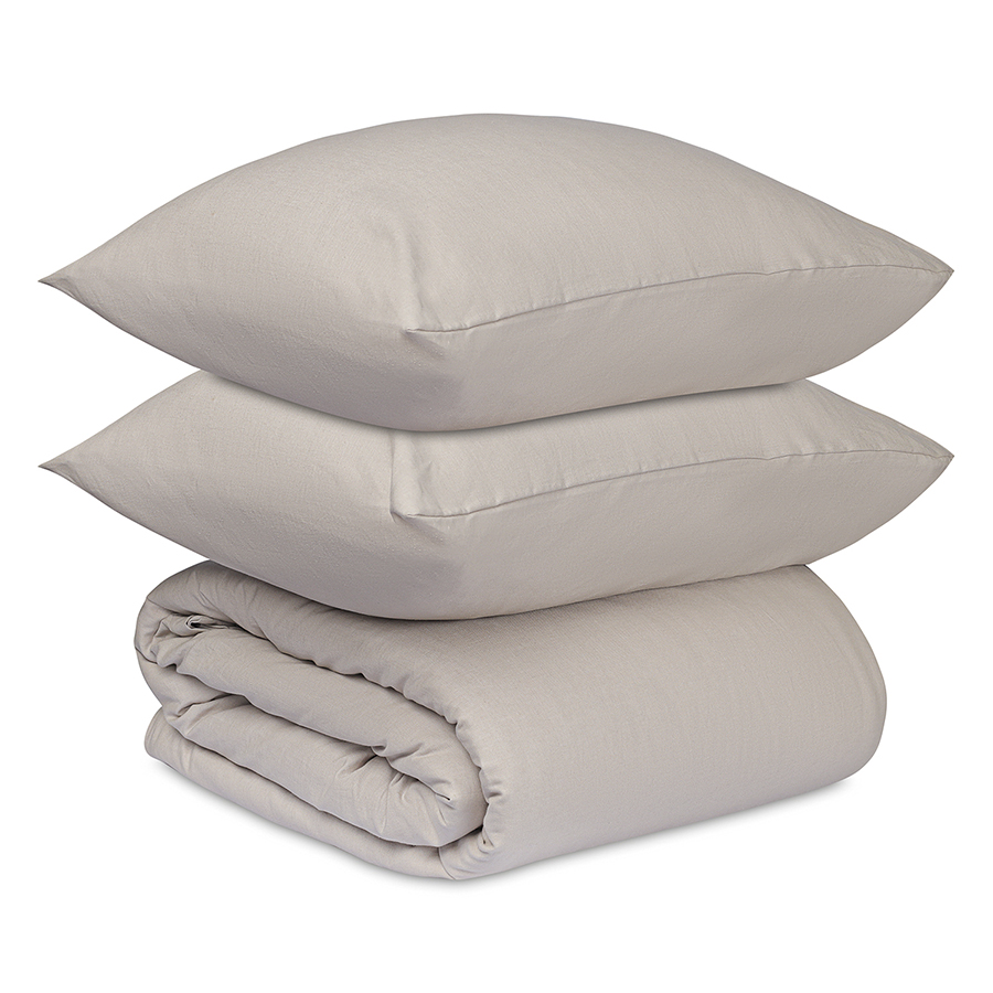 Комплект постельного белья изо льна и хлопка серо-бежевого цвета из коллекции Essential, 150х200 см 8 фото