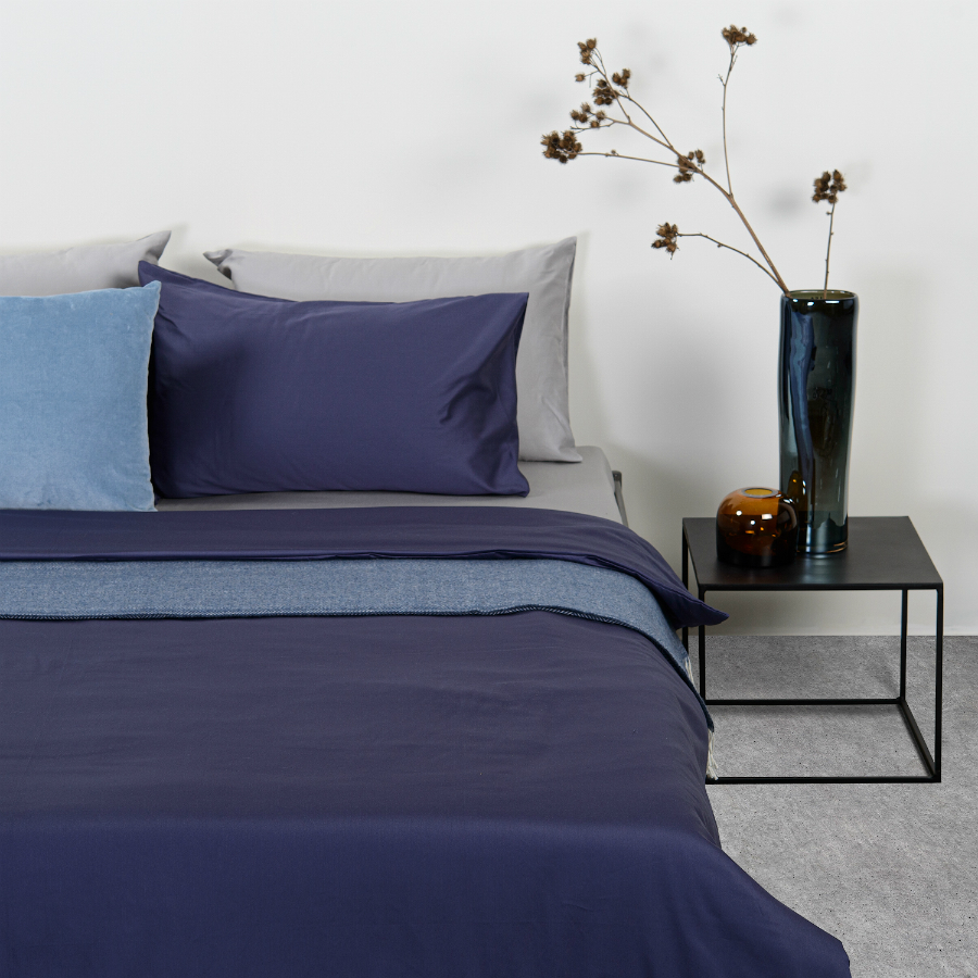 Комплект постельного белья полутораспальный из сатина темно-синего цвета из коллекции Essential 10 фото
