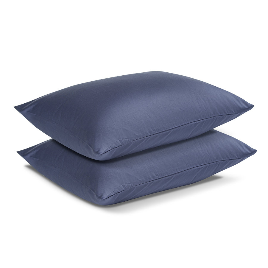 Набор из двух наволочек из сатина темно-синего цвета из коллекции Essential, 50х70 см 7 фото