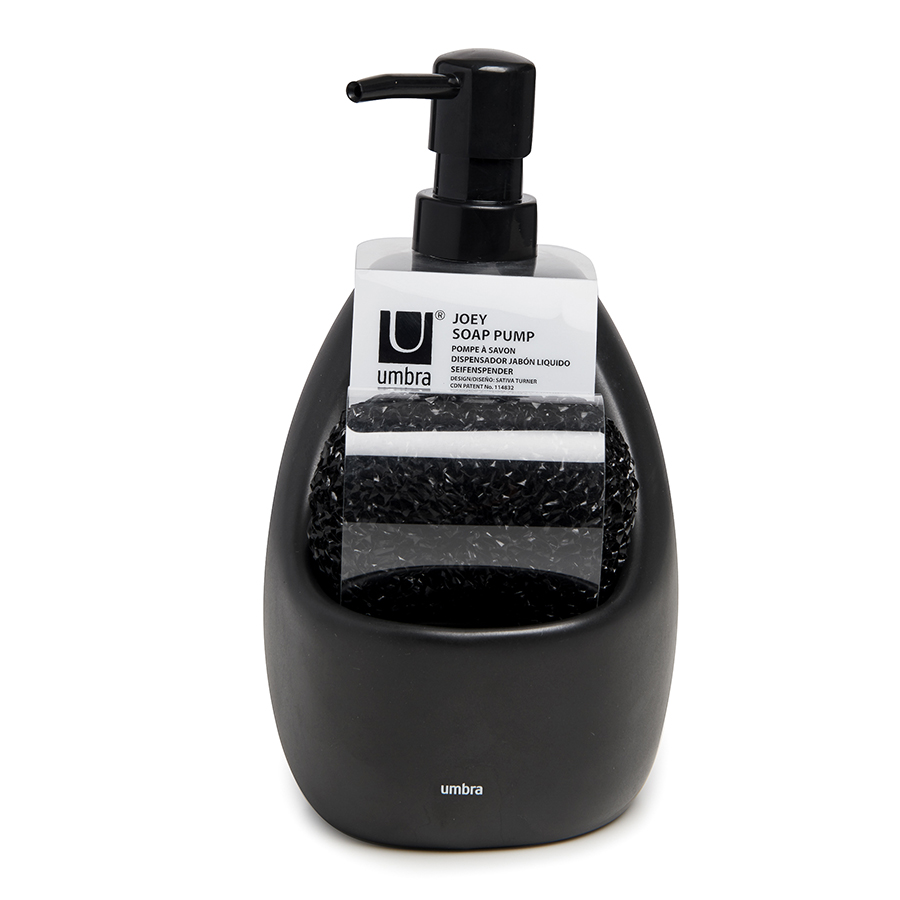 Диспенсер для мыла с подставкой для губки Joey, 590 мл, черный 10 фото