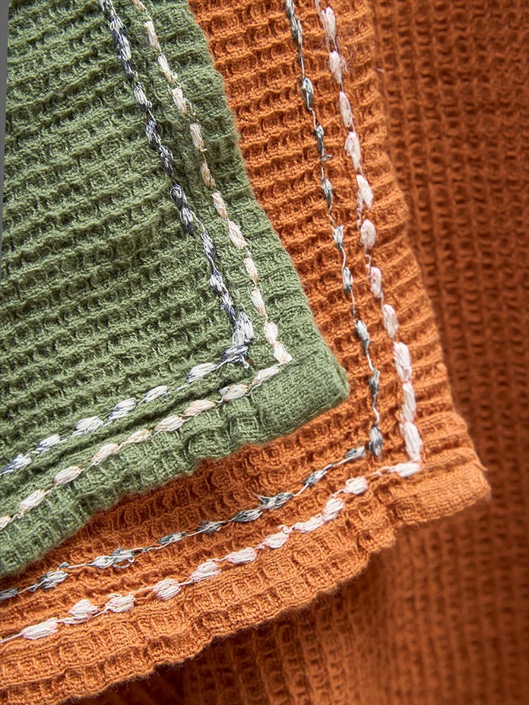 Набор вафельных полотенец с декоративной строчкой из коллекции Essential, 50х70 см 9 фото