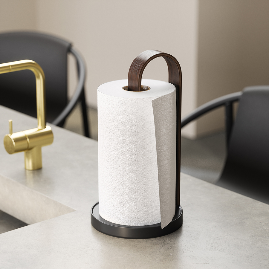 Держатель для бумажных полотенец Bellwood, черный/орех 10 фото