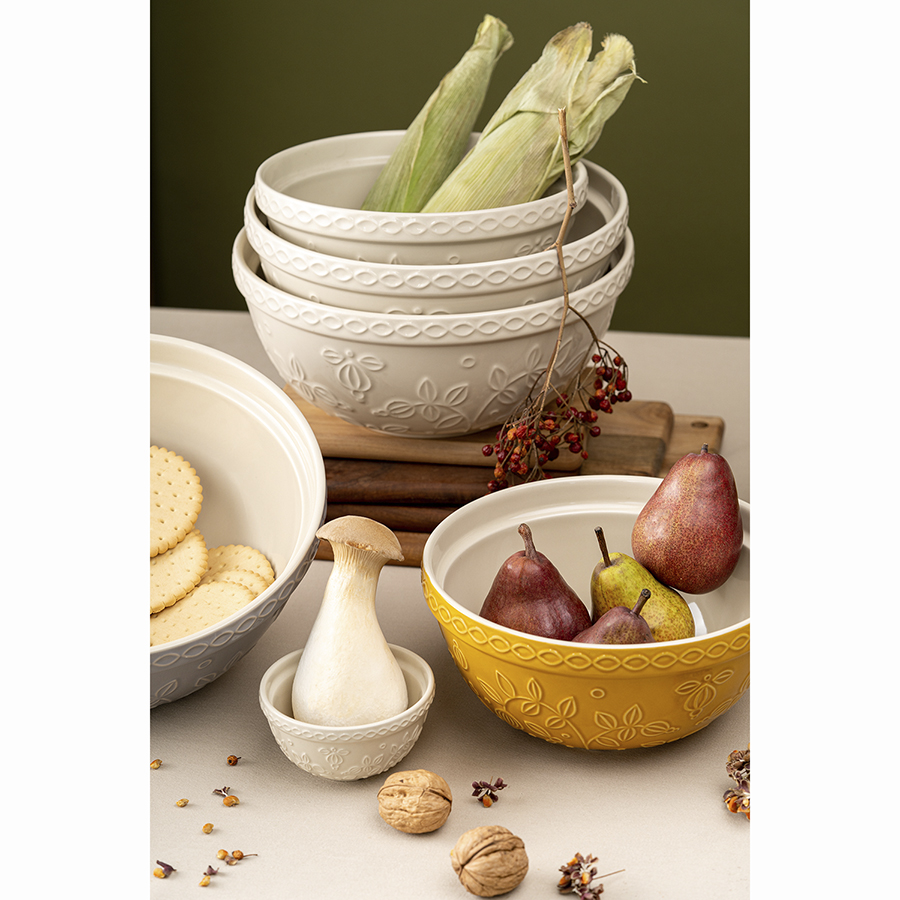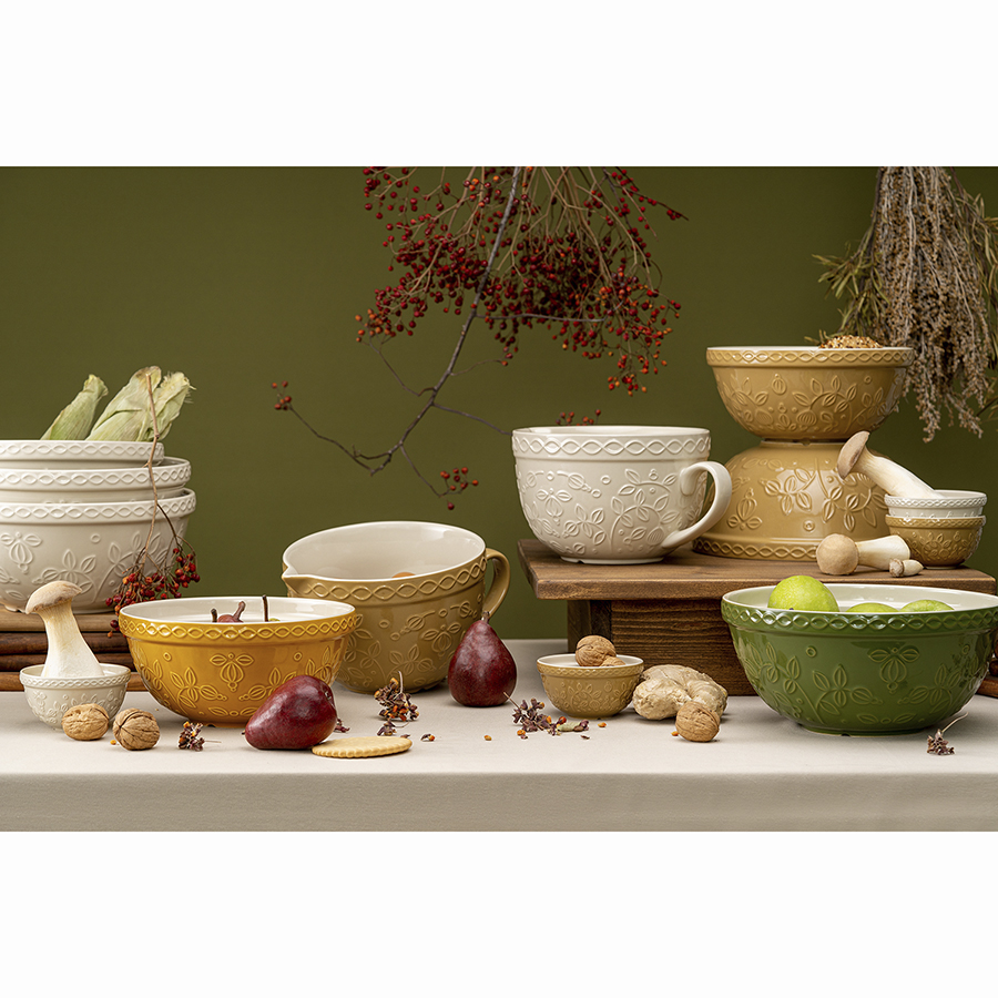 Миска горчичного цвета с рельефным узором Ягоды Тайги из коллекции Russian North, 1,5 л 10 фото