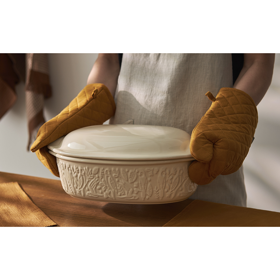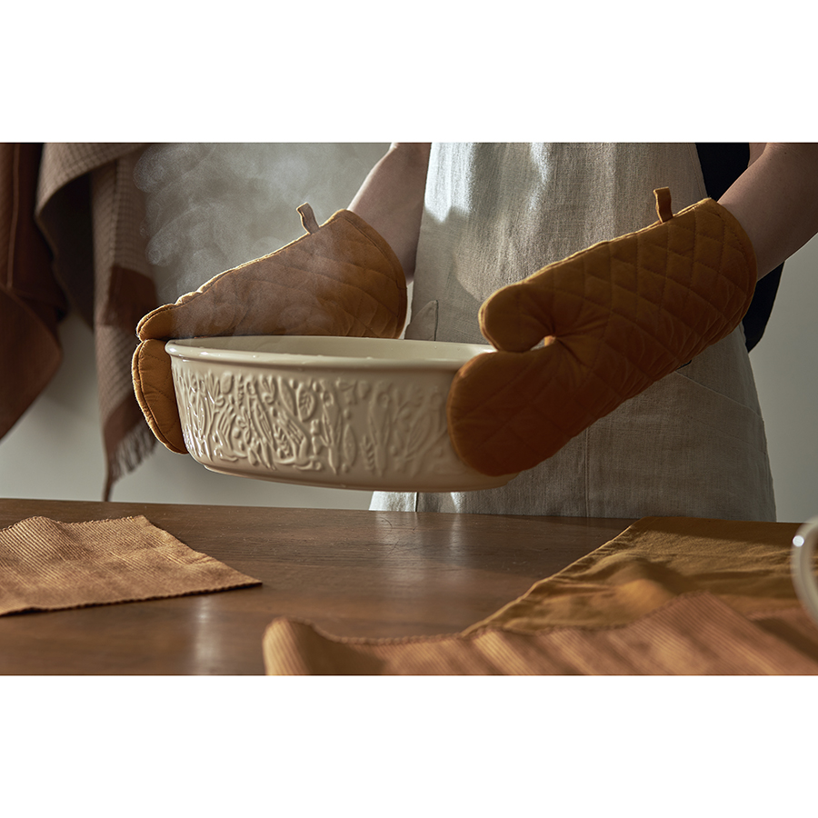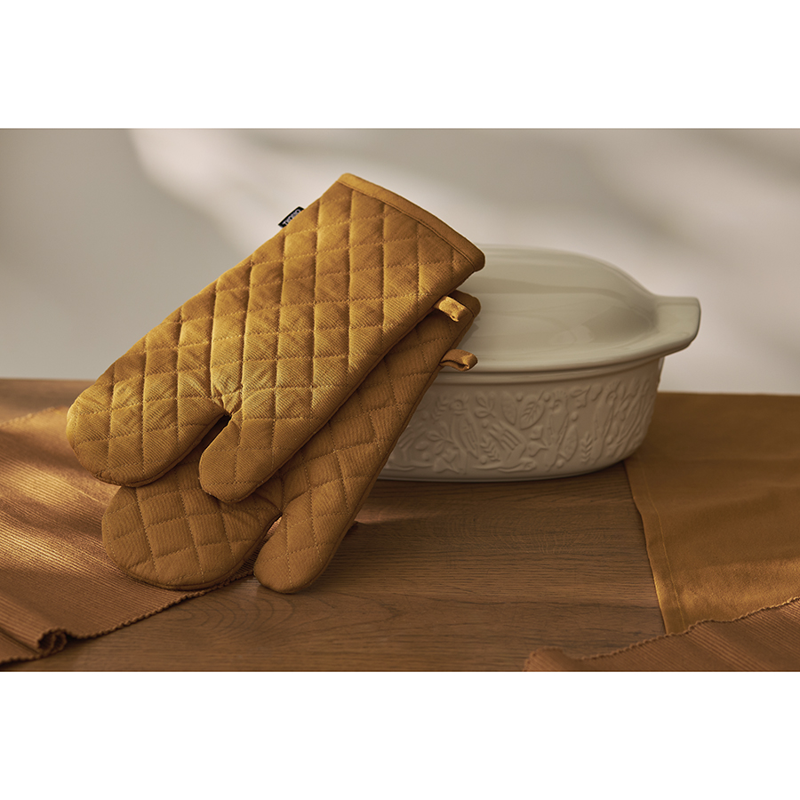 Прихватка-варежка из хлопка цвета карри из коллекции Essential, 33х17,5 см 6 фото