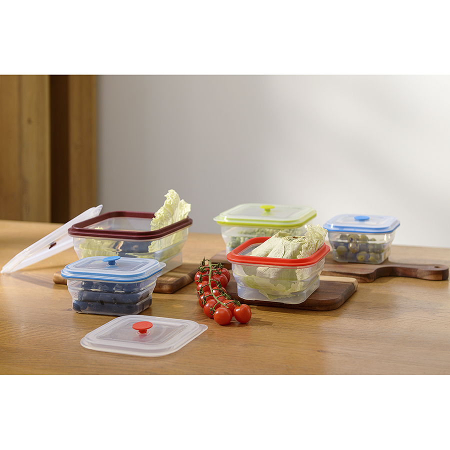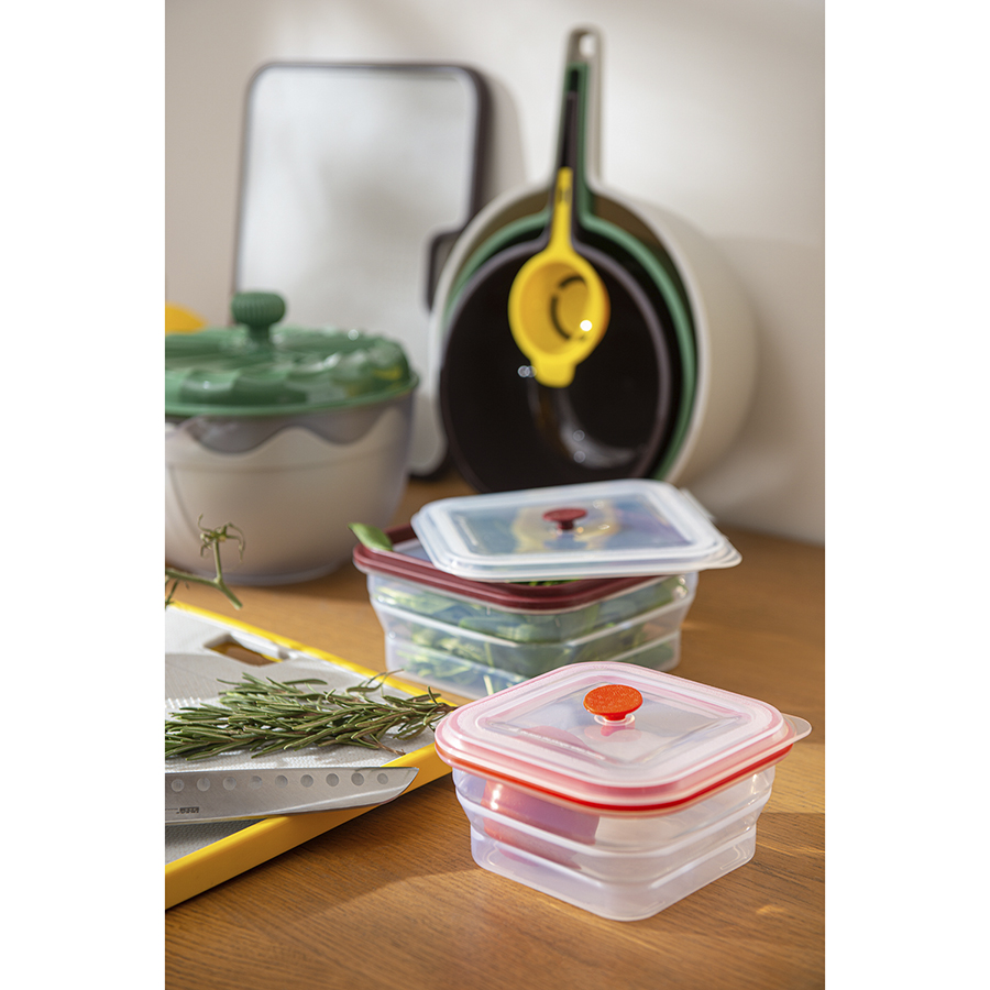 Контейнер для переноски и хранения силиконовый квадратный складной Silikobox, 600 мл, красный 9 фото