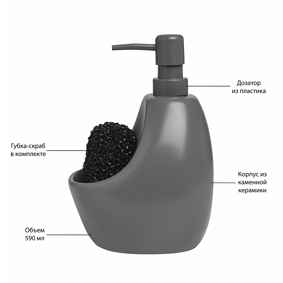 Диспенсер для мыла с подставкой для губки Joey, 590 мл, уголь 9 фото