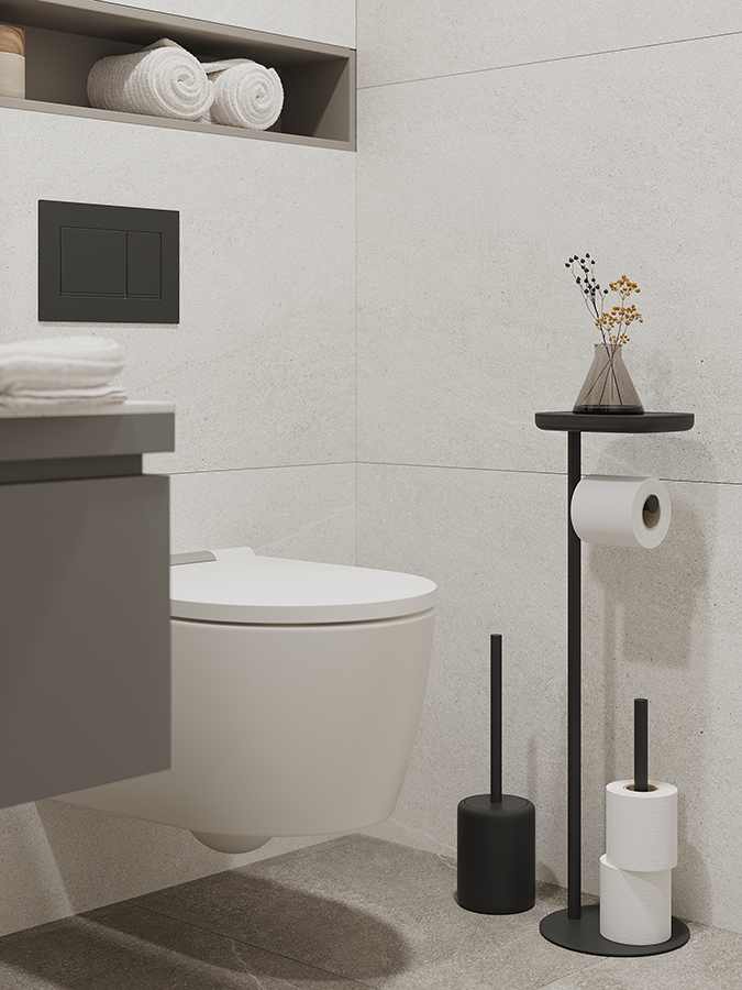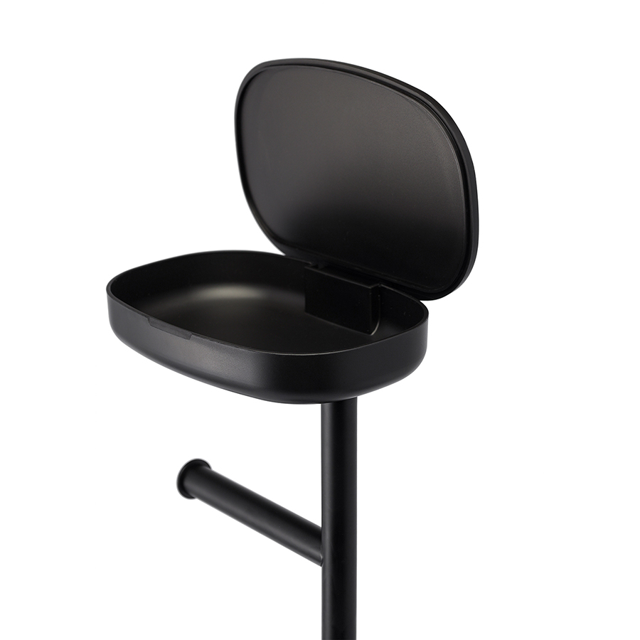 Держатель для туалетной бумаги с полочкой Slim, черный 5 фото