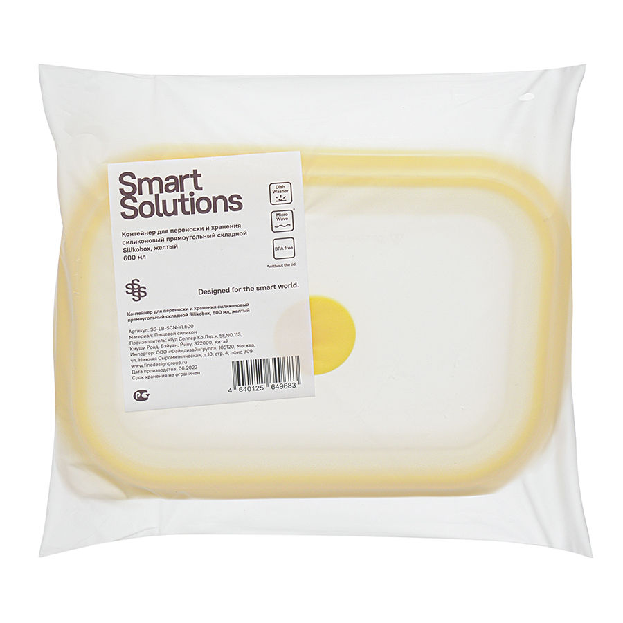 Контейнер для переноски и хранения силиконовый прямоугольный складной Silikobox, 600 мл, желтый 10 фото