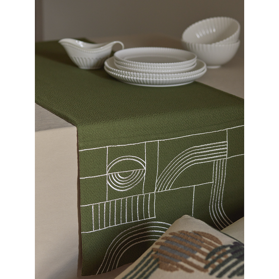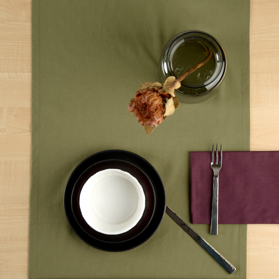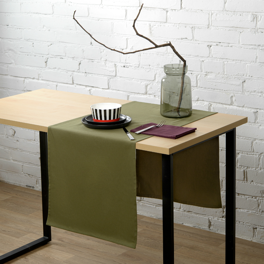 Дорожка на стол из хлопка оливкового цвета из коллекции Essential, 45х150 см 7 фото