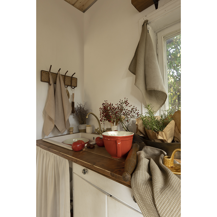 Набор из двух вафельных полотенец изо льна бежевого цвета из коллекции Essential, 50х70 см 10 фото