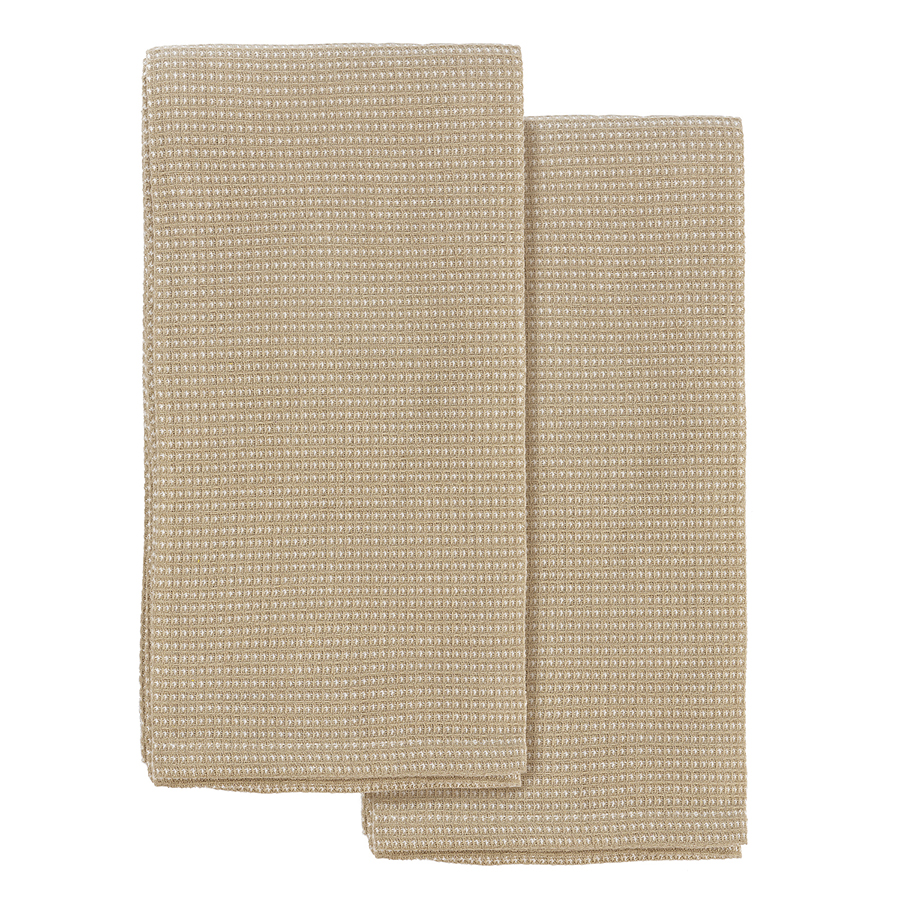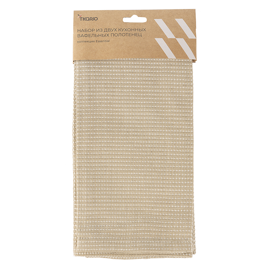 Набор из двух кухонных вафельных полотенец  бежевого цвета из коллекции Essential, 50х70 см 7 фото