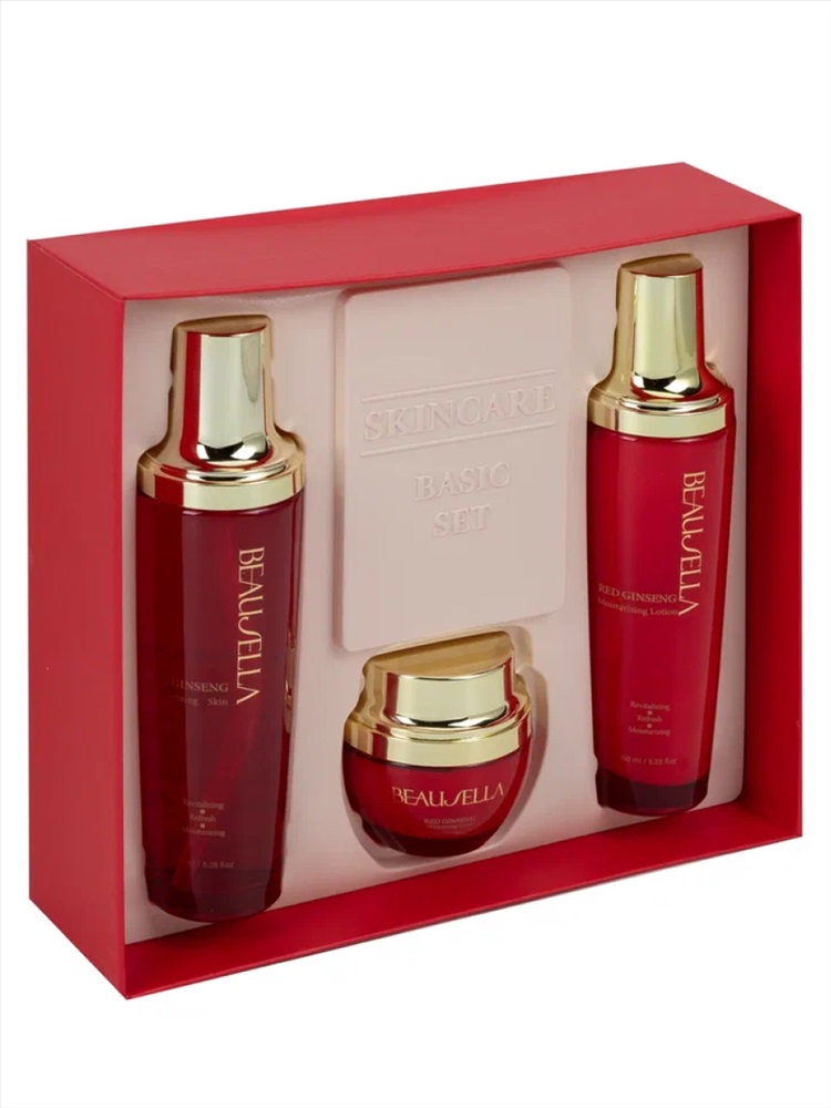 Beausella Увлажняющий набор для лица с экстрактом красного женьшеня: тонер, лосьон, крем / Red Ginseng Moisturizing Set, 150 мл x 2, 50 г 5 фото