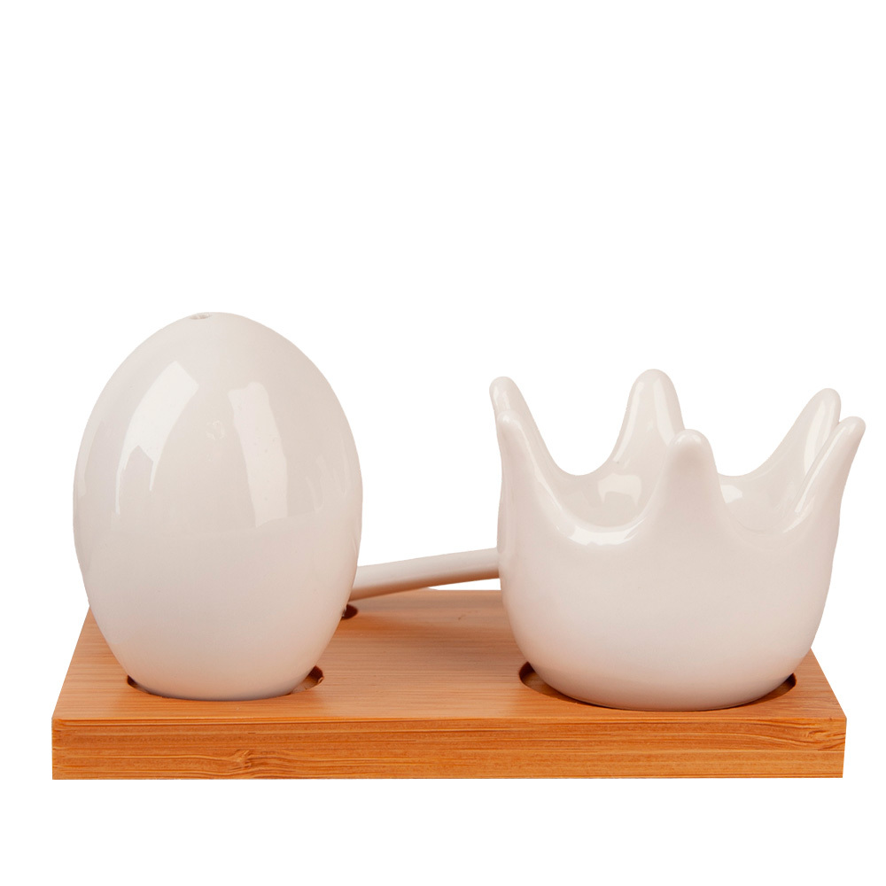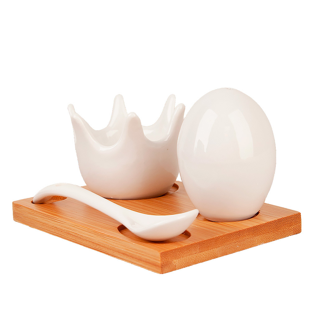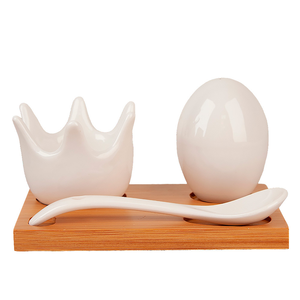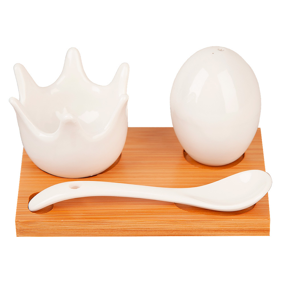 Набор на подставке: подставка для яйца, солонка, ложка "Naturel" 11,5*8*5см (подарочная упаковка) 10 фото