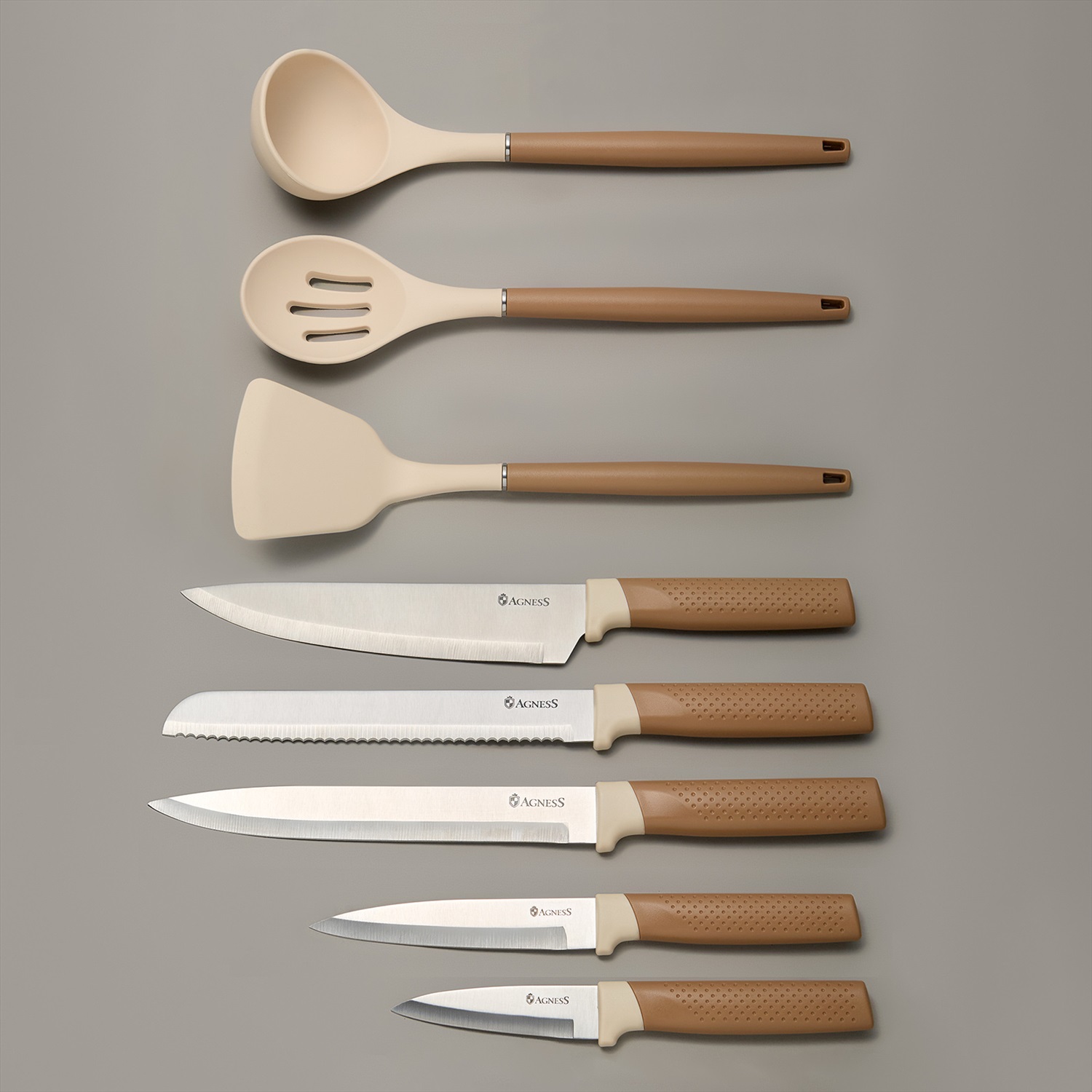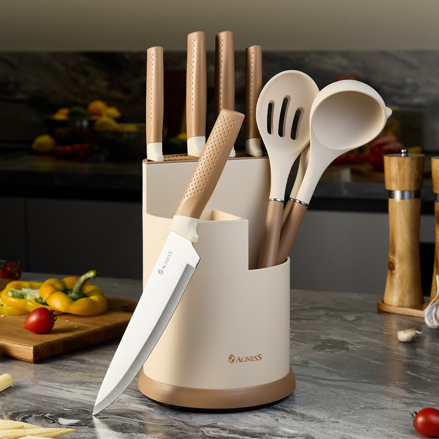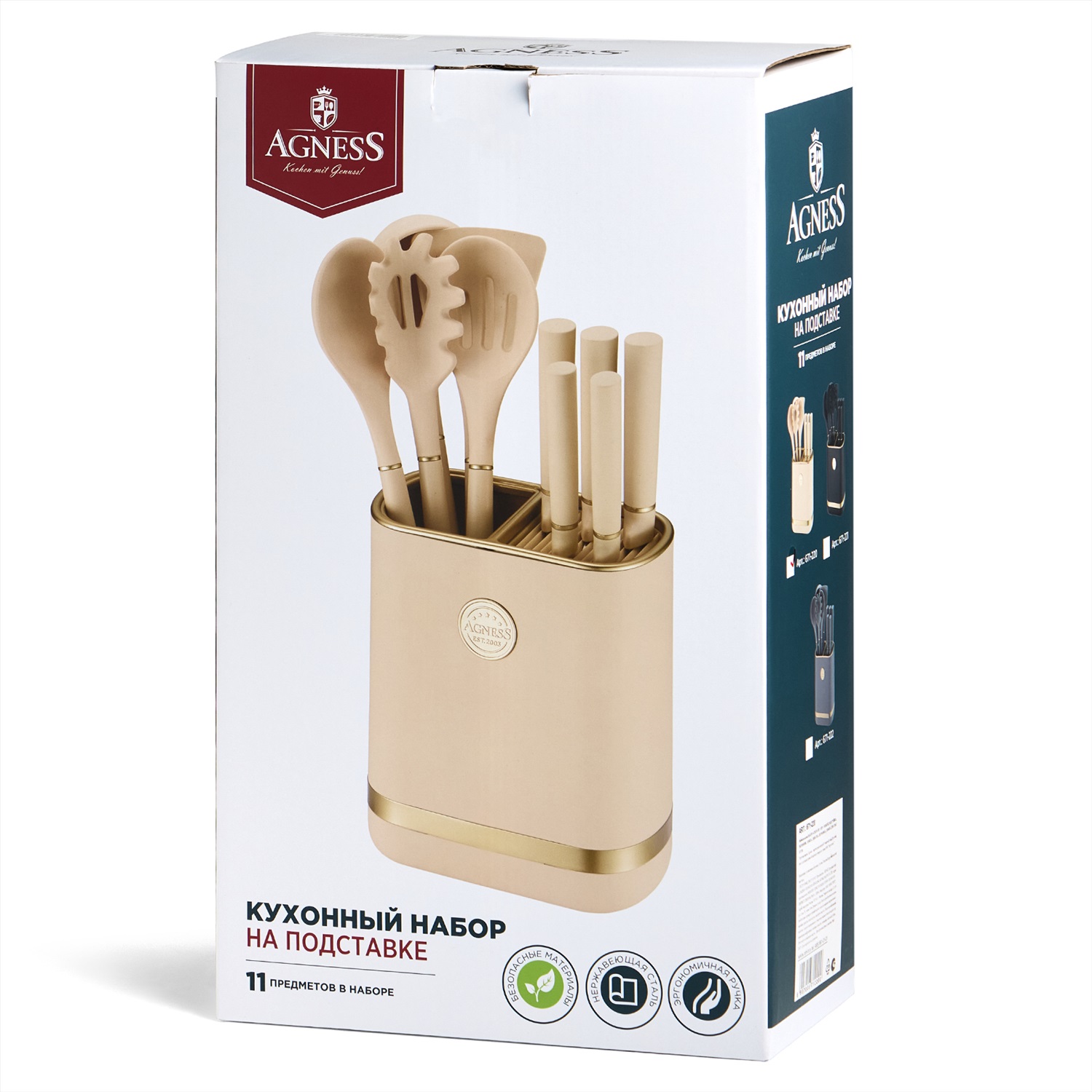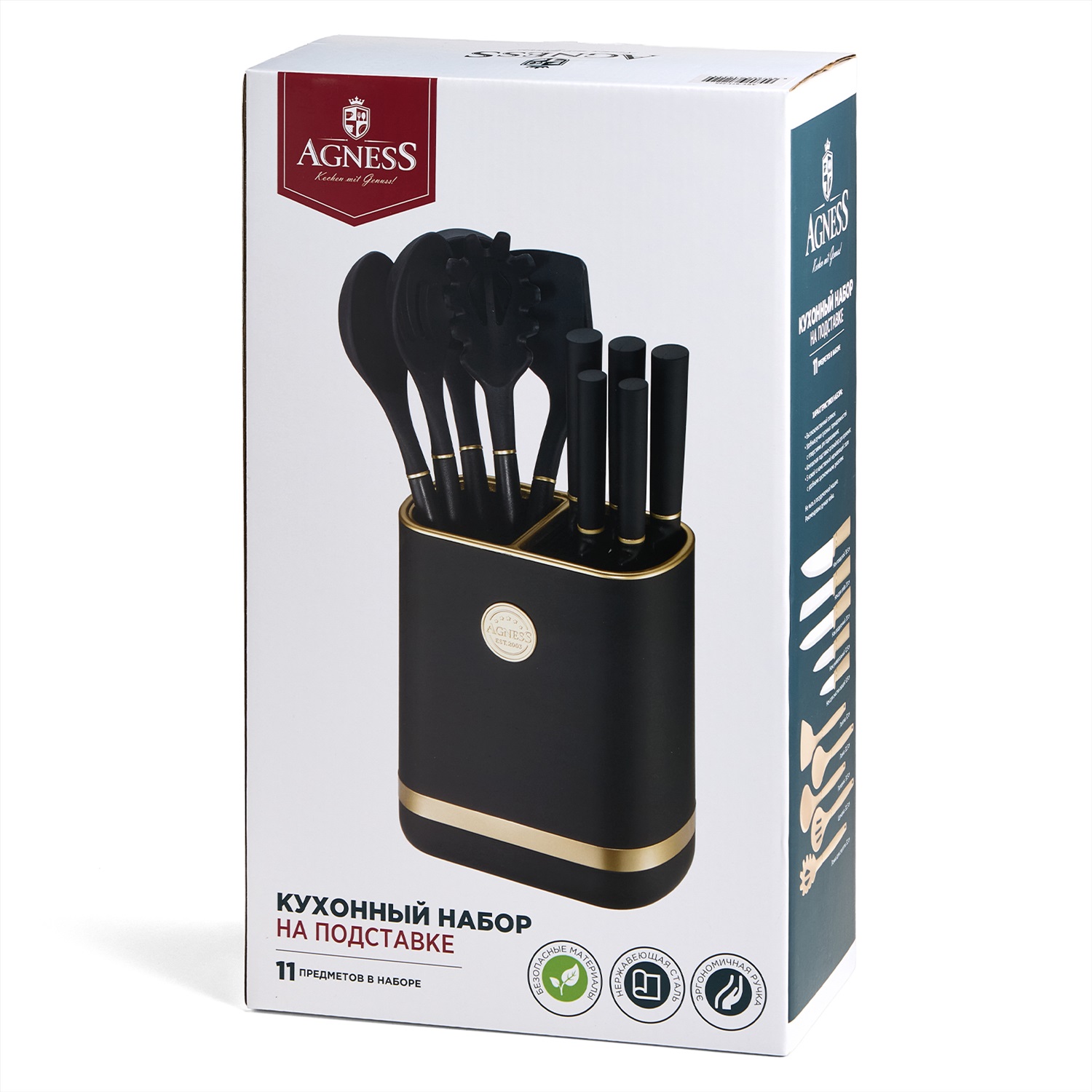 НАБОР AGNESS ИЗ 11ПР: 5 НОЖЕЙ,ПОДСТАВКА,ПОЛОВНИК,ЛОЖКА,ЛОПАТКА,ШУМОВКА,ЛОЖКА ДЛЯ СПАГЕТТИ 8 фото