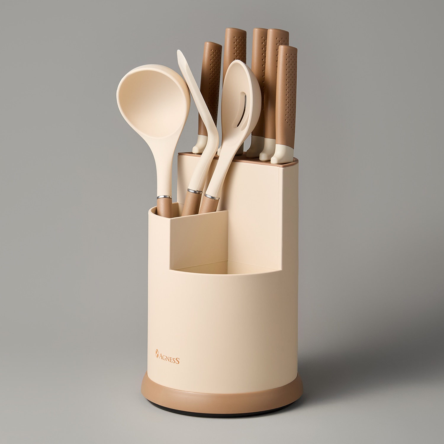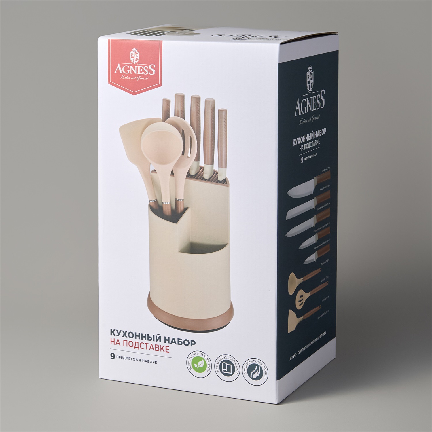 НАБОР AGNESS ИЗ 9ПР: 5 НОЖЕЙ, ПОЛОВНИК, ЛОПАТКА И ШУМОВКА, ВРАЩАЮЩАЯСЯ ПОДСТАВКА 9 фото